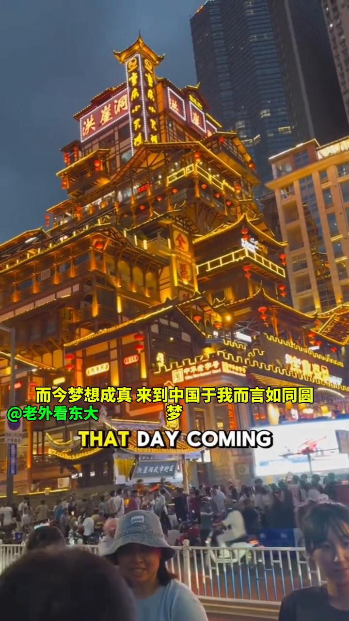 美国人对中国未来城市的反应。 老外看东大。 我身后是我到访的第100个国家,欢迎来到中国,更具体地说。这里是中国重庆,这就是这个地方的真实名称,而这里是真正的赛博朋克城市,这是最具未来感的城市之一,我一生中从未见过。就在那里,你可以看到地铁穿过桥梁驶向另一边。 重庆有许多不同的岛屿,这里的购物中心非常疯狂,它们有悬浮的小平台,你会感觉自己置身于森林之中,这是一种超现实的体验。我们很多人对中国的模样都有自己的想象或者完全没有概念,因为从来没有人教过我们关于中国的正确认知。 我去过世界各地,但我的梦想之一就是来到那些我从未想过有可能到访的国家,而今梦想成真来到中国于我而言如同圆梦,因为这是我们鲜少能亲眼见证的真实模样。衷心感谢你们跟随这场冒险与我同行,陪伴我共同踏上这第100个国家的旅程,未来还有更多目的地等待探索。