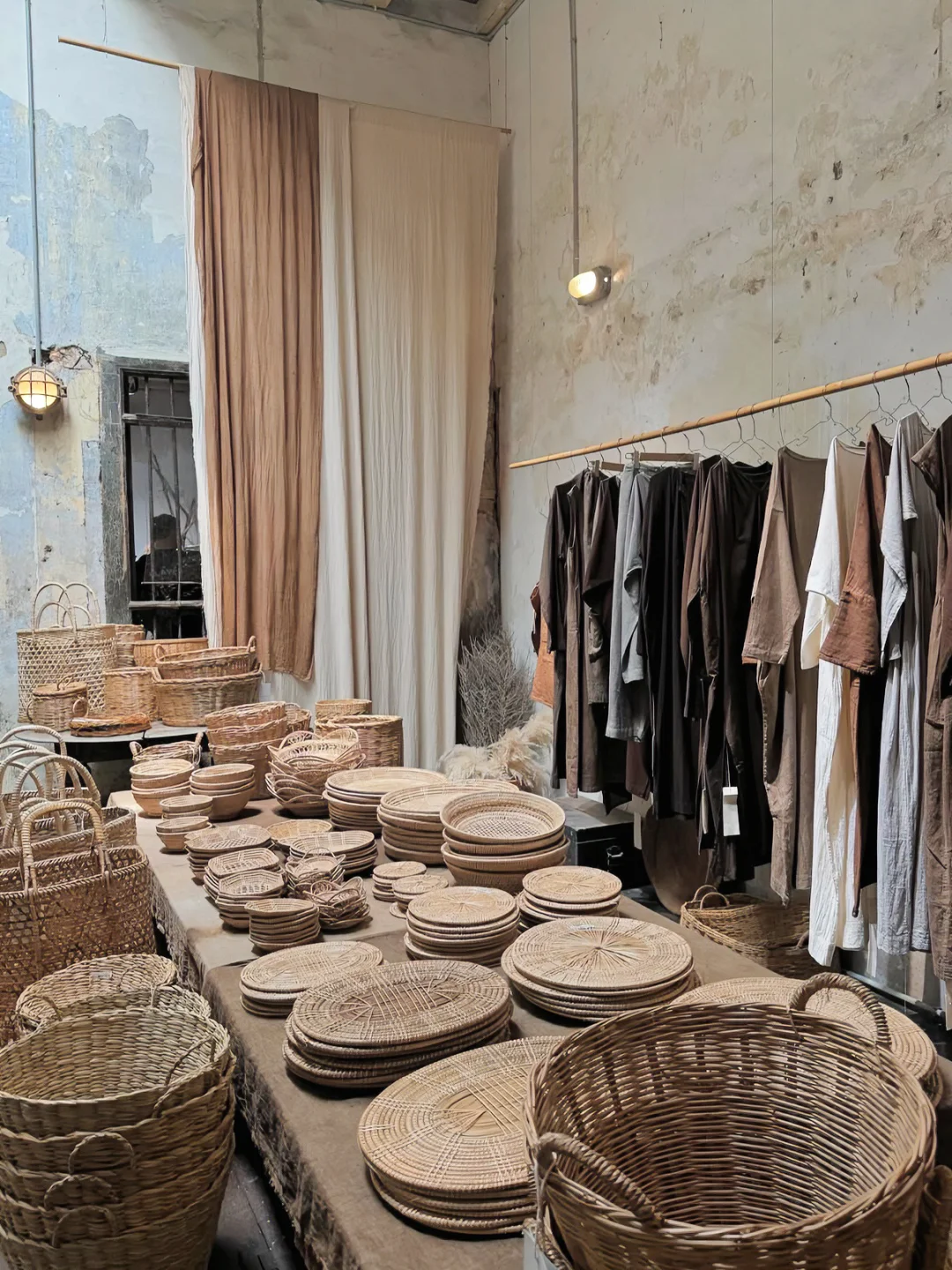 这是一家结合了手工艺品店和茶室的复合空间。店内有棉麻衣物、陶器、竹编等天然材质的工艺品,是满满的日式侘寂风和东南亚手作风格。除了购物还可以坐下喝杯咖啡☕️