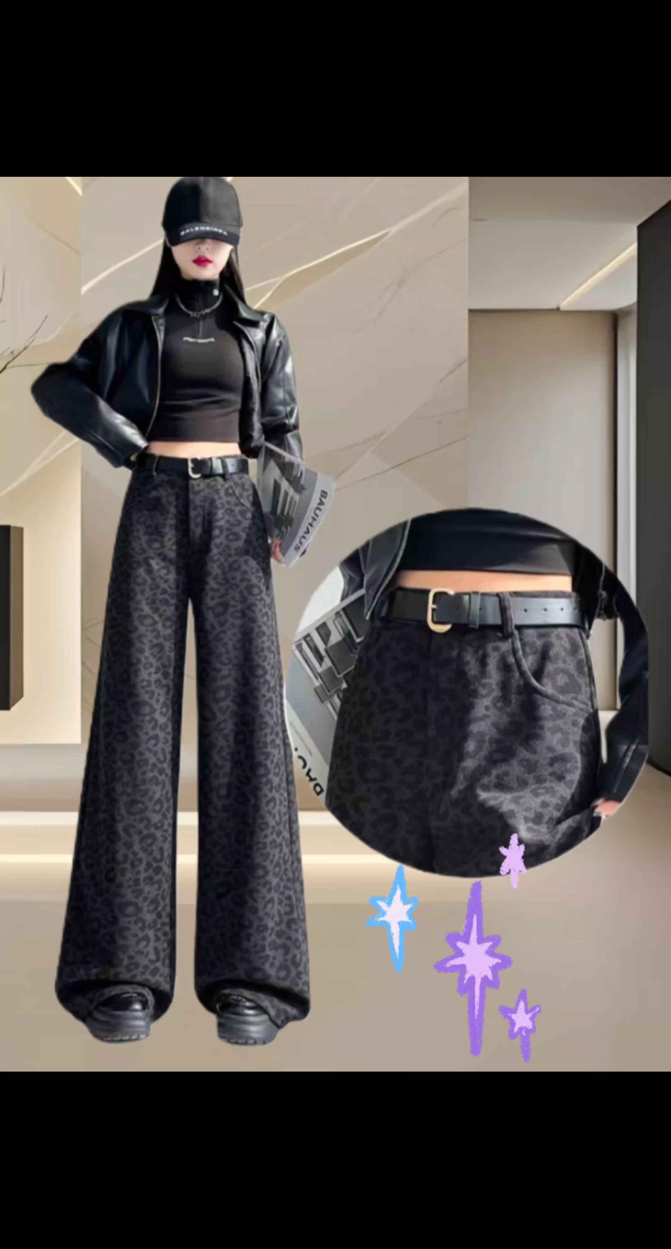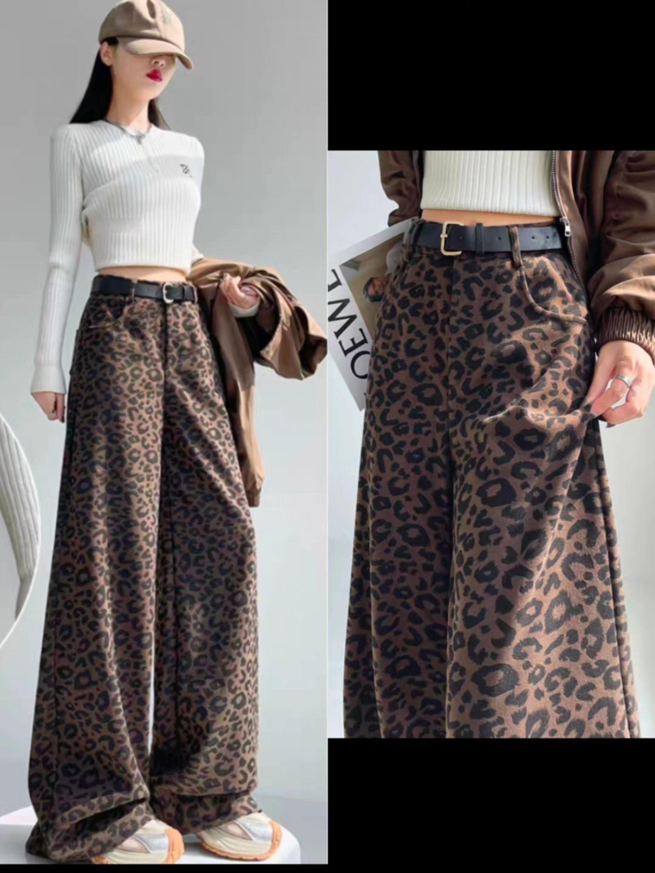 姐妹们!这条豹纹裤真的太好看了!它是这种宽松直筒版型,上身只有裤型没有腿型,而且它还是今年超火的元素,不管怎么搭都时髦感满满,喜欢的姐妹闭眼冲就完事了。时尚气质穿搭 面料柔软舒适 谁穿谁好看不分年龄段