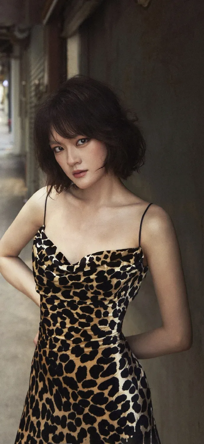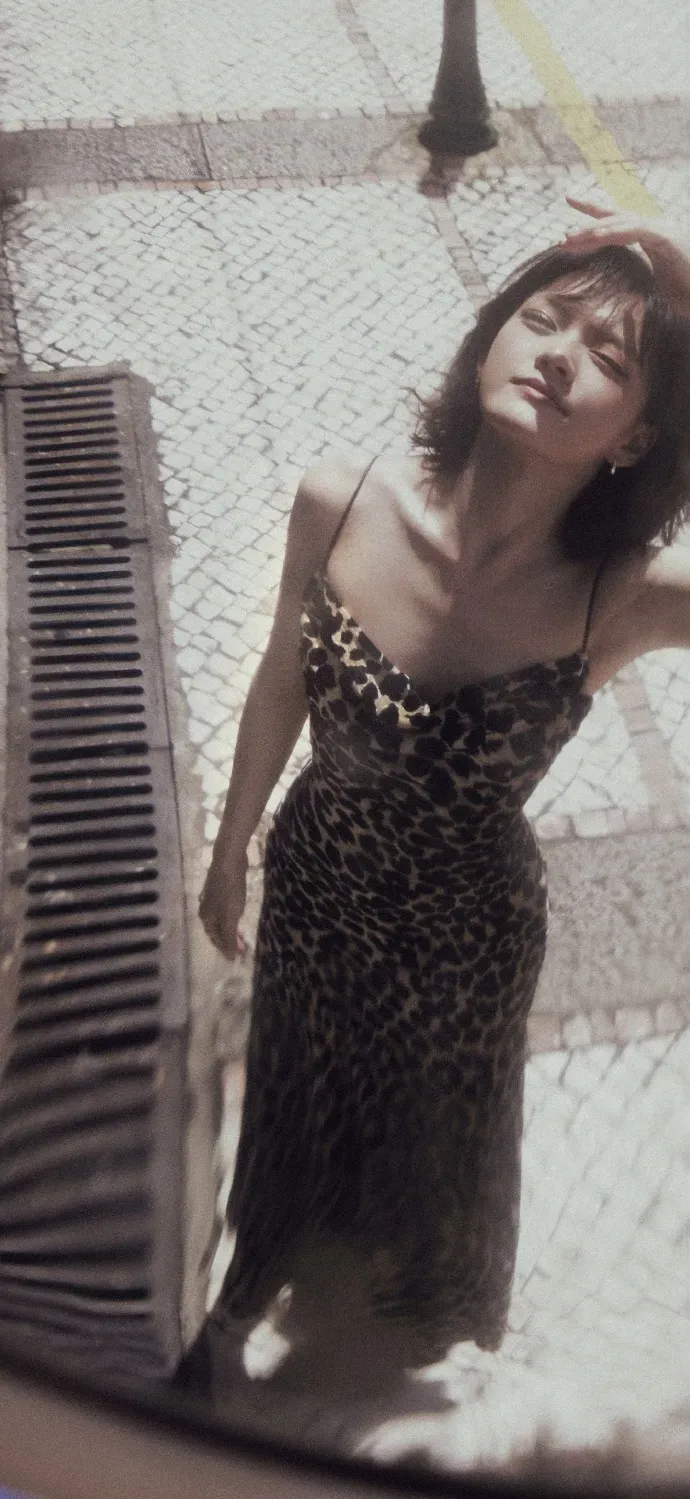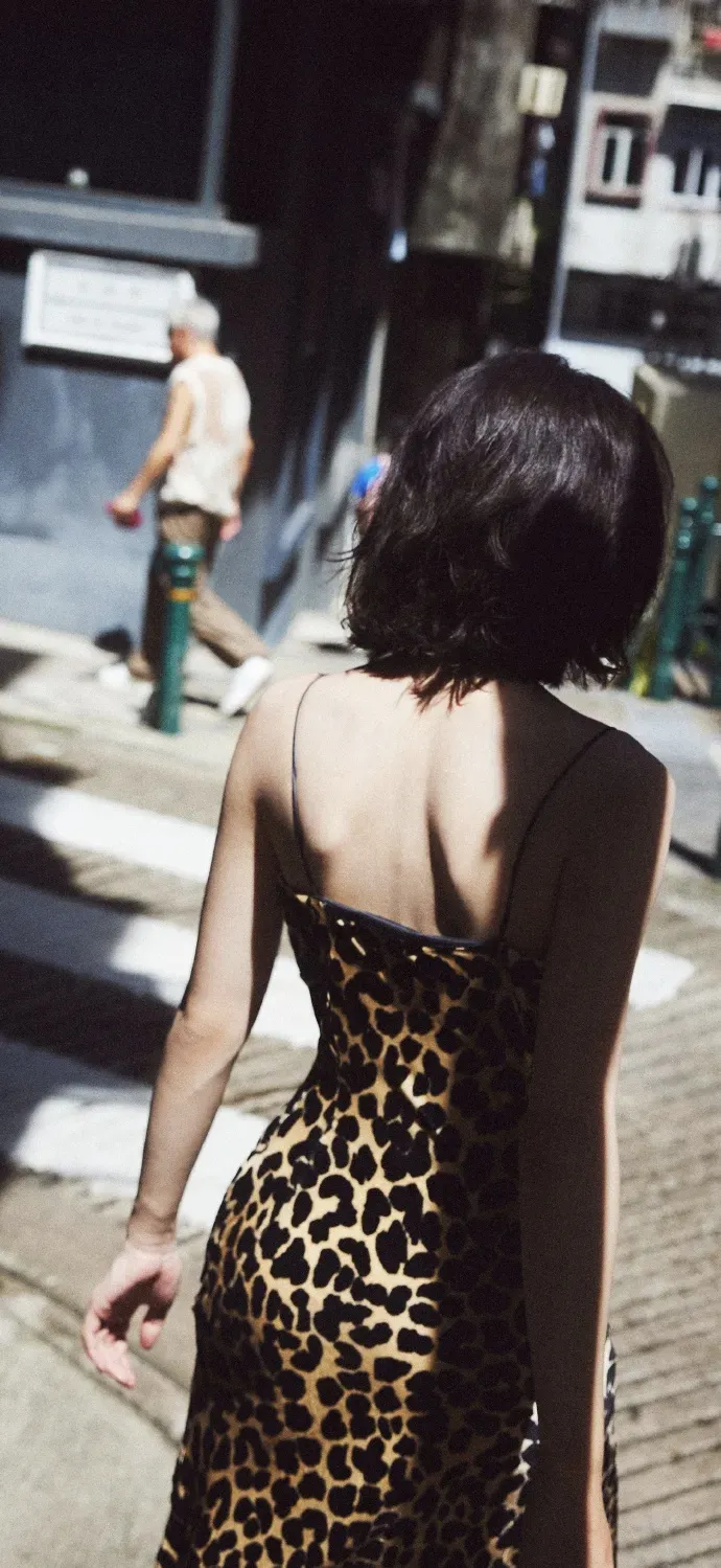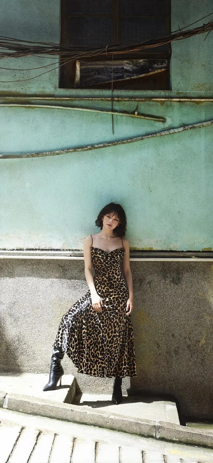 文琪高清美照分享|阳光明媚的午后,穿着豹纹连衣裙的少女在街头漫步,散发...