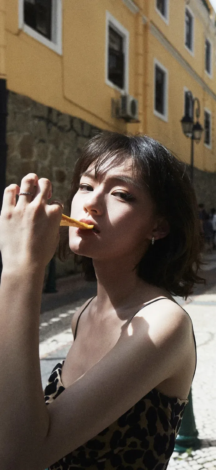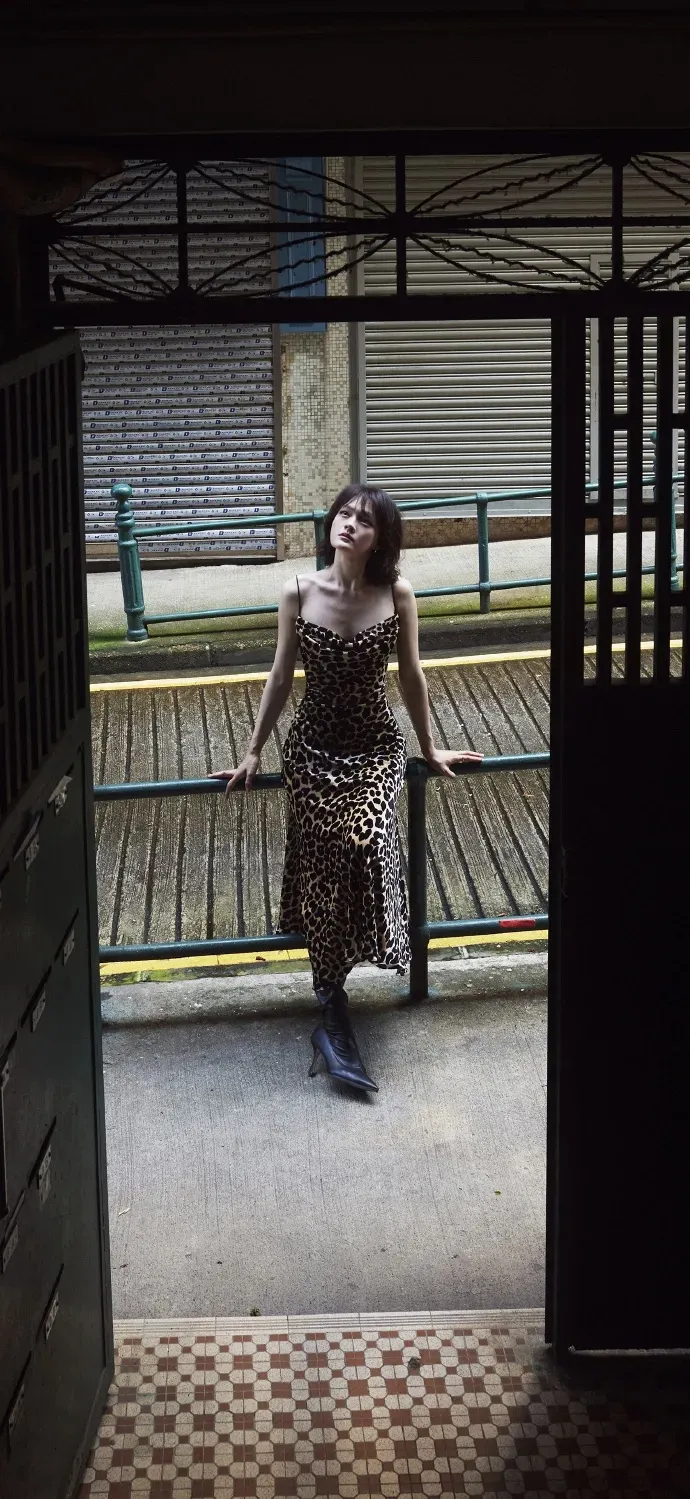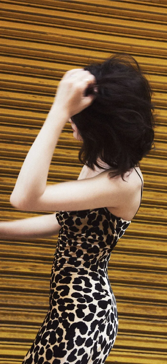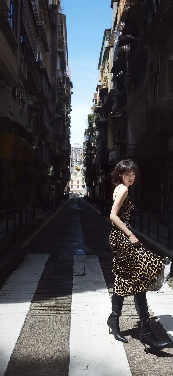 文琪高清美照分享|阳光明媚的午后,穿着豹纹连衣裙的少女在街头漫步,散发...