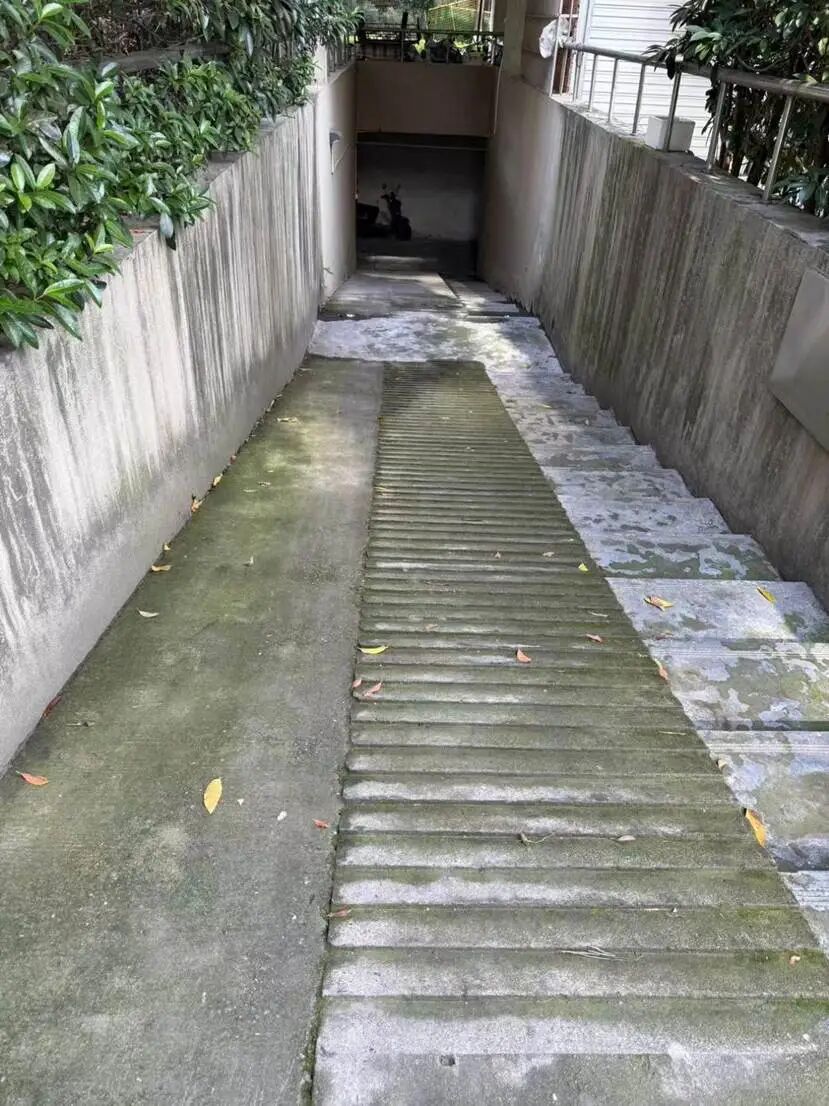 慧仁家园这个地下车库入口的坡道上有青苔,有点危险