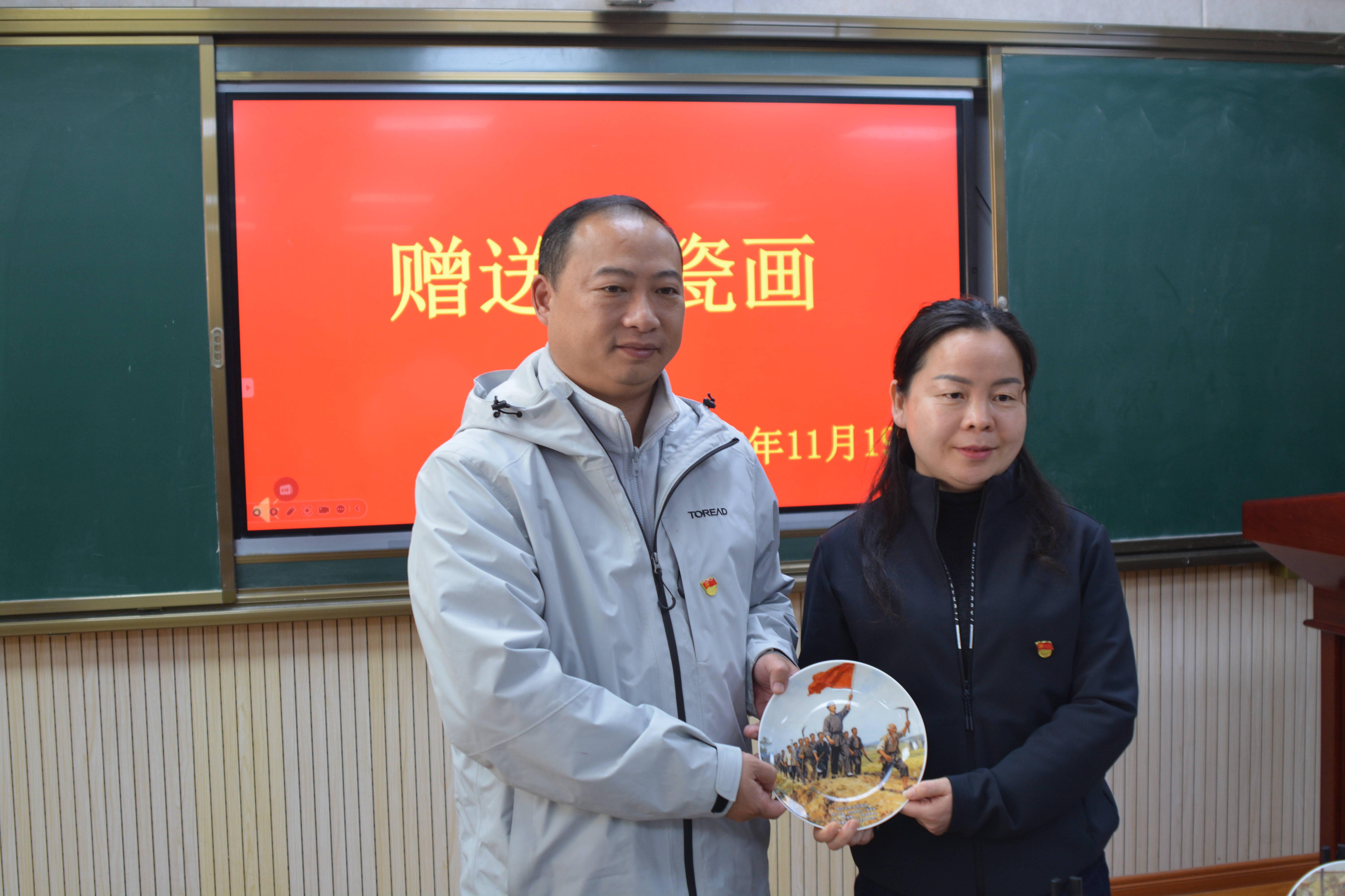 理论学习与艺术实践深度融合是活动核心。主题微党课《龙松泉:信仰的播种者》系统梳理革命先辈精神品质;宜春职业技术学院师生带来的原创舞台剧《松泉破晓》片段,以沉浸式艺术手法,将理论转化为情感共鸣,增强红色教育感染力与实效性。“艺心向党·铸魂传承”成果展示环节,高校学生展示红色主题艺术创作,并向马步乡中心小学赠送陶瓷画,实现美育与思政教育同频共振,拓宽文化育人载体。