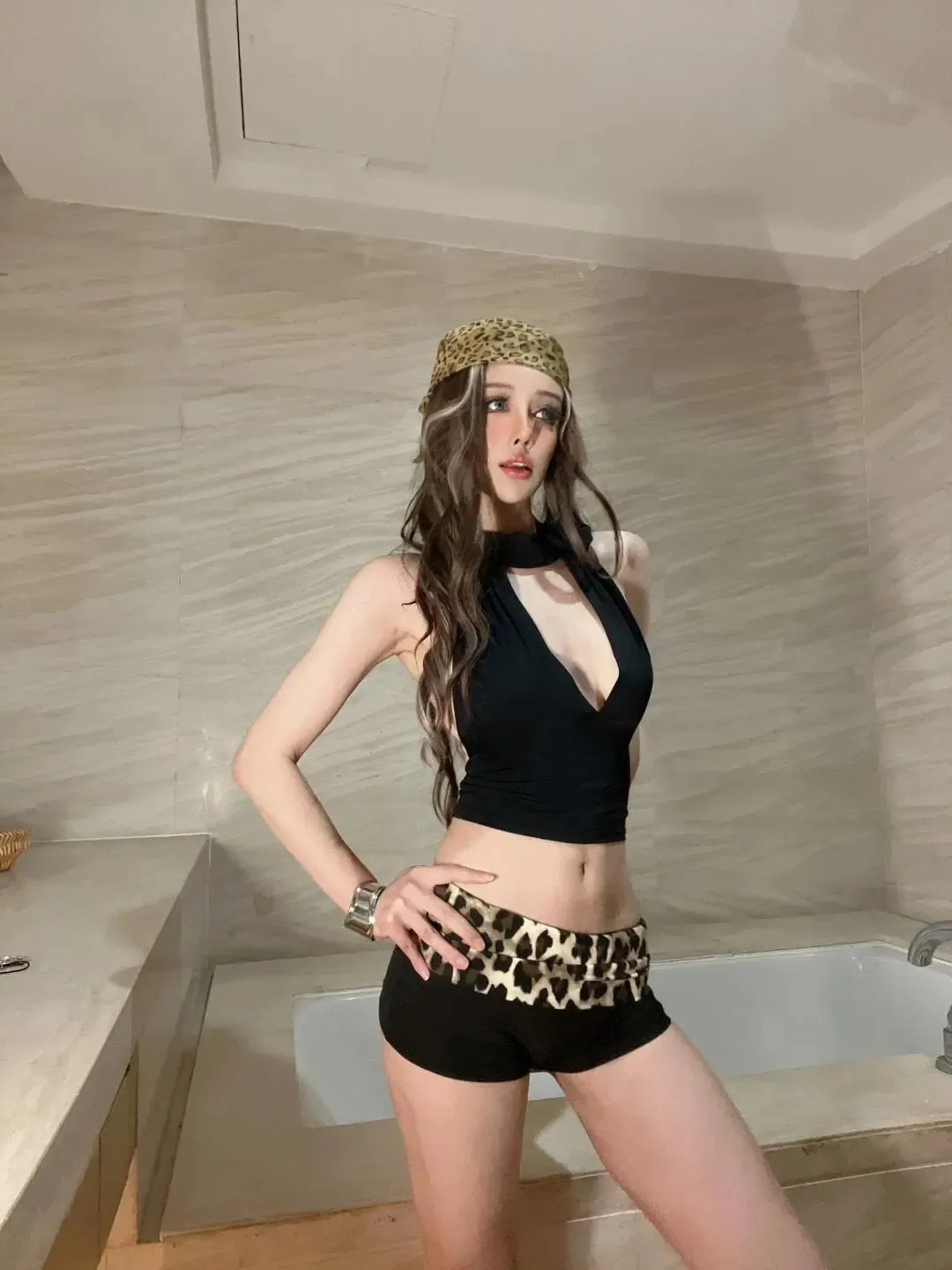 美女写真 豹纹小吊带,性感又迷人!🦁💃!,时尚!!💰??