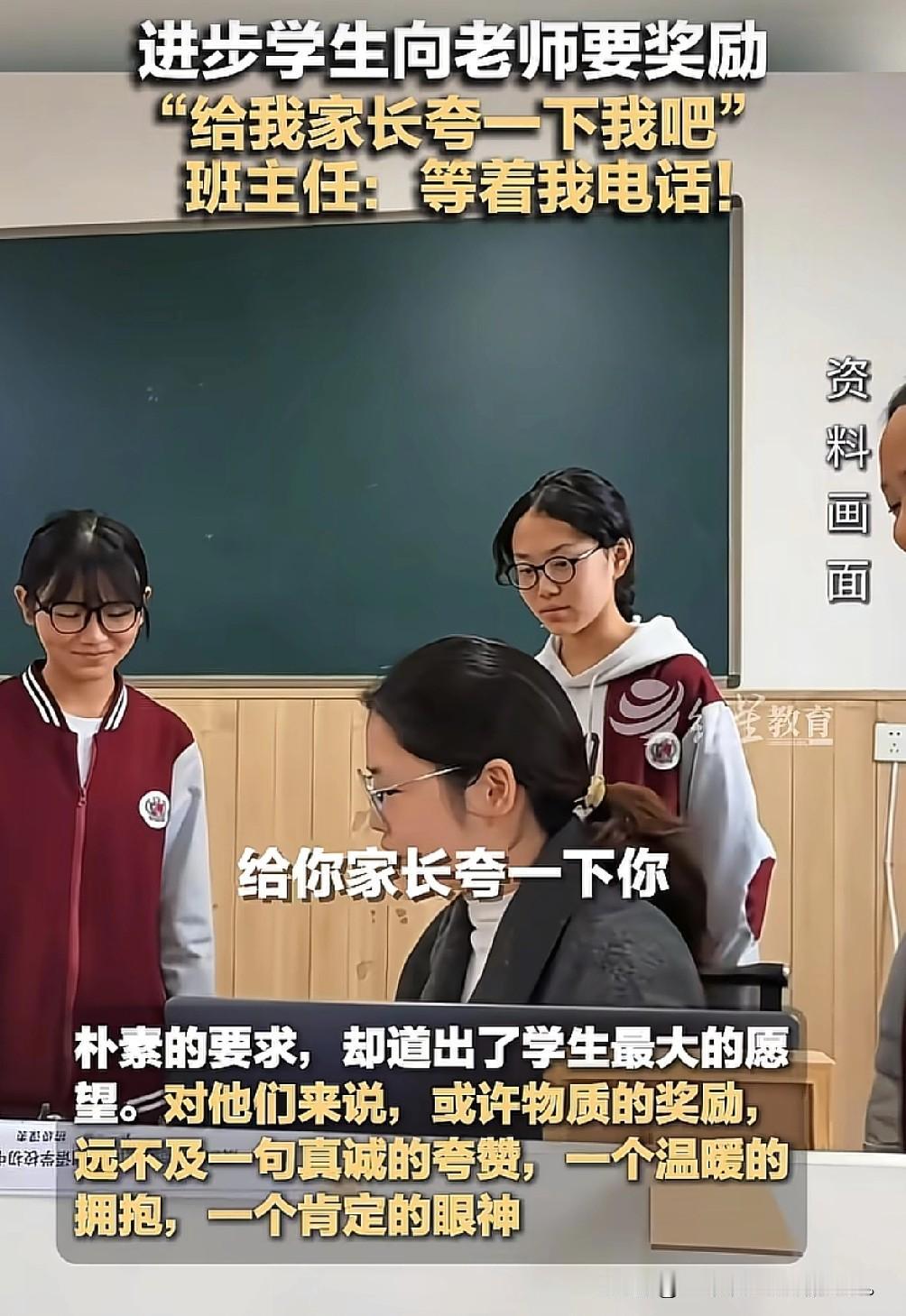 其实孩子的要求很简单, 想得到家长的认可和表扬, 四川成都一位初二的女生,这次考试有了进步,老师询问她要不要奖励,女生害羞的点头,想让家长夸奖一下她。 老师瞬间明白这位女同学的意思,老师立马答应她的要求,老师表示自己晚上下班就定好闹铃,给她家长打电话,表示她这是考试有进步。 老师一边说一边把这次考试的试卷交给这位女同学,女同学也很有礼貌的用双手接过,表示对老师的感谢。 这样的操作羡慕坏了在一边的其他同学,孩子不管多大都想得家长的认可,有时候孩子小小的进步作为家长应该给予正面的反馈。 不是所有的孩子都能考一百分,也不是所有的孩子都一定能考上大学,孩子进步了家长就应该表扬,每次的夸奖,都是孩子的催化剂。 其实不论是生活孩子学习,孩子都想得到表扬,不是非要考到一百分才可以表扬,50分同样可以得到表扬,说明他掌握着50分的知识点。 那怕他得了0分,他写上自己的名字,同样可以表扬他你太勇敢了,都可以写上自己的名字了!