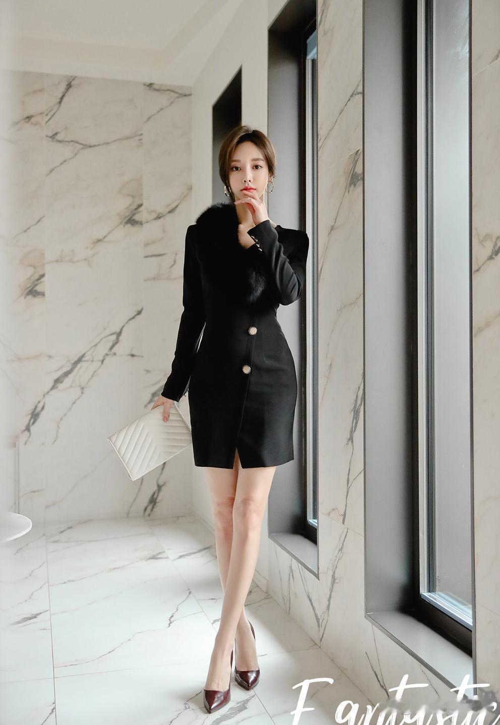 孙允珠,一袭凝墨高冷王妃貂皮单肩职业裙霸气亮相,把 “冷艳女总裁” 与 “王室王妃” 的风格糅合得恰到好处 —— 利落的黑色职业裙剪裁修身,单侧貂皮大毛领如墨玉般华贵,两颗金属纽扣点缀出精致细节,搭配酒红色高跟鞋与白色手包,在大理石背景的衬托下,活脱脱一副 “不怒自威” 的高冷名媛范儿! 她的颜值更是为造型加分不少:利落短发衬得巴掌脸愈发精致,红唇冷艳、杏眼锐利,耳间的环形耳饰闪烁着冷光,每一处都在诠释 “高奢冷美人” 的定义。单手叉腰的姿态气场全开,将职业装的干练与貂皮的华贵完美融合,难怪网友直呼 “这是从宫廷剧里走出来的王妃吧!”