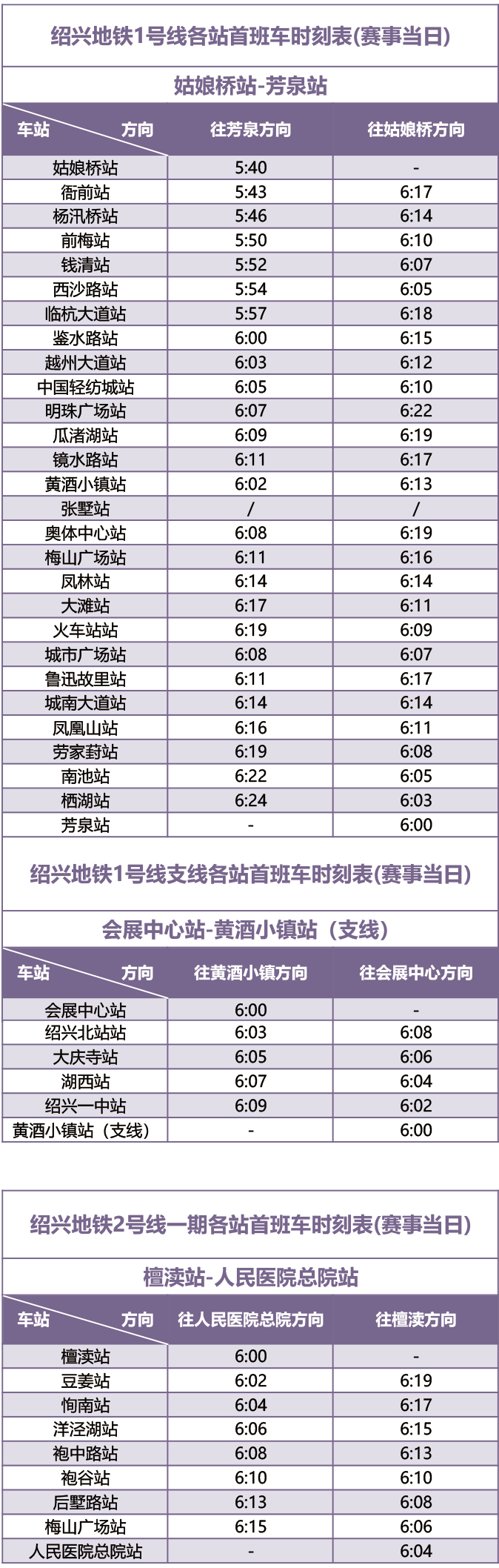 赛事当日,绍兴地铁1号线部分车站将提前投入运营: