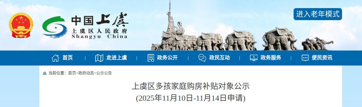 近日,绍兴上虞区人民政府发布一则《上虞区多孩家庭补贴对象公示(2025年11月10日-11月14日申请)》: