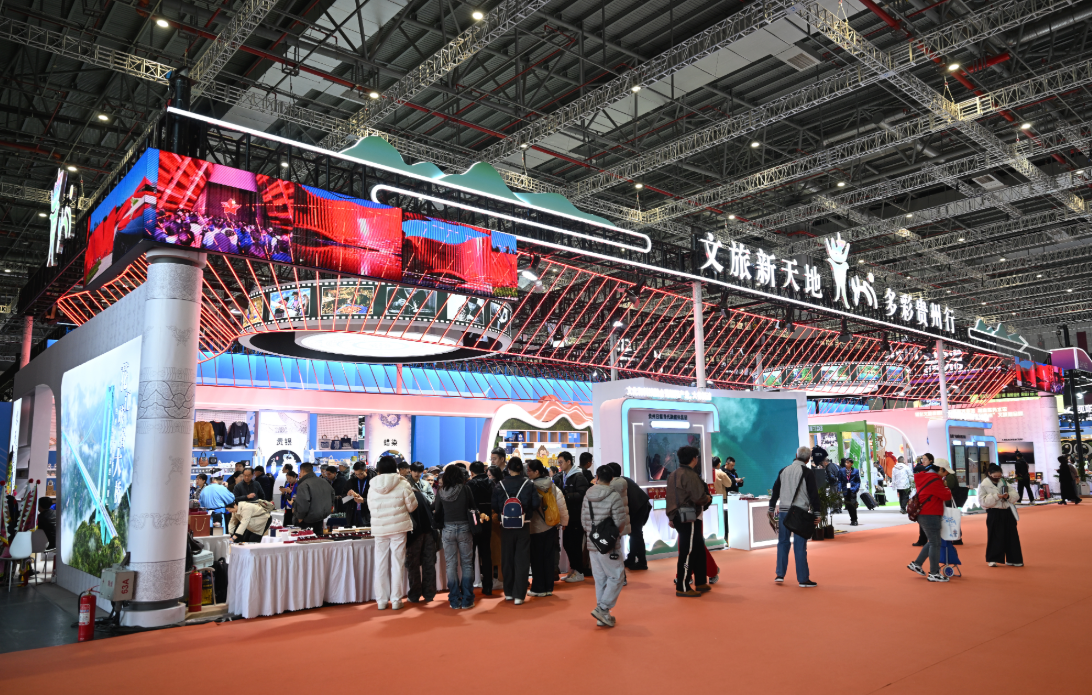 除生动呈现贵州文化瑰宝的丰硕成果外,贵州展馆通过“黄小西吃晚饭”“世界第一高桥”等特色展位,推介秋冬季旅游及“爽居贵州”旅居品牌,集中展示康养旅居、度假酒店、民宿集群、露营基地、高山滑雪、高桥蹦极等特色项目,并呈现“小车小团”“支支串飞”等旅游业态产品及“十镇百寨”等文旅品牌。