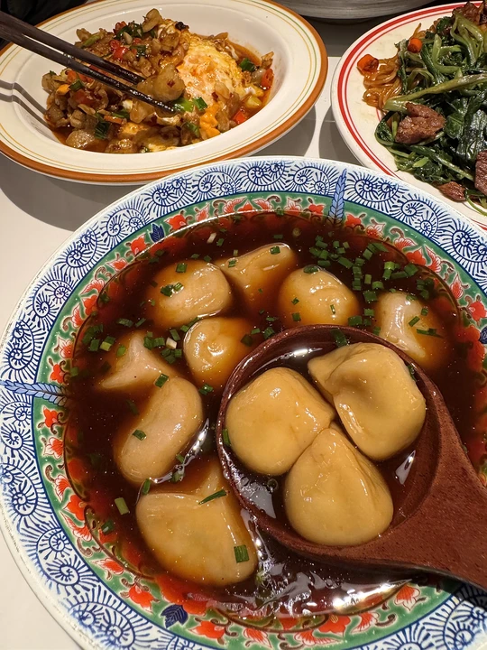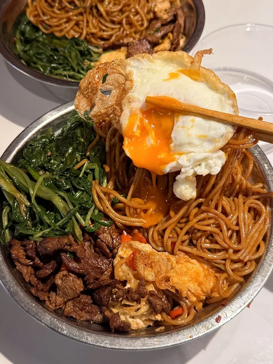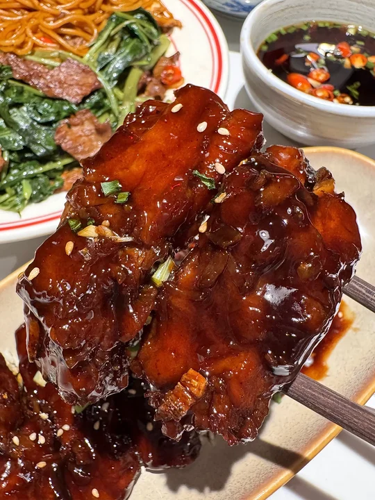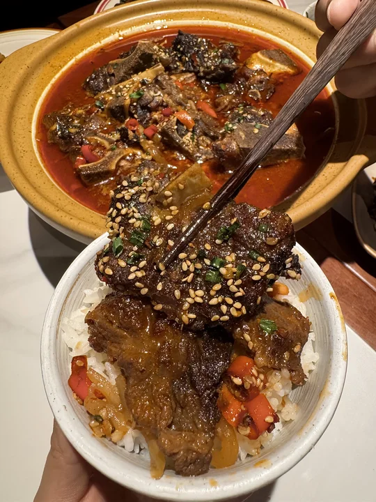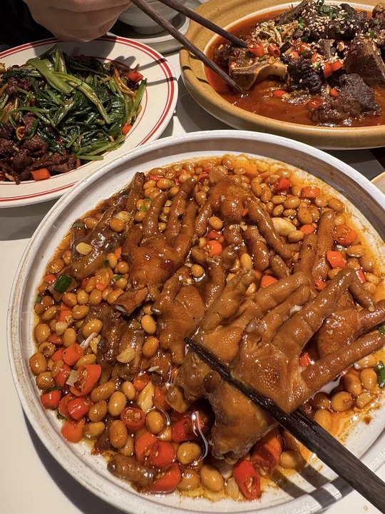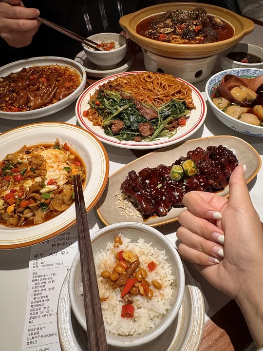 空心菜炒粉!终于在上海吃到了😭 坐穿地铁7号线也要去吃的!!叫:抚青橙)粉条qq的又辣又烫!料很多夹一个溏心蛋🤤一口下去真的惊为天人的好吃! 个人推荐黄豆烧鸡爪、青柠糖醋排骨、景德镇牛骨…很有锅气随便点点都好吃! 个人心中上海no.1的江西菜!!!
