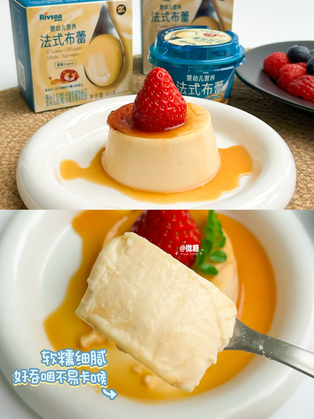 今天用到的禾泱泱法式布蕾,必须点名表扬~作为一款宝宝辅食,口感软糯嫩滑,一抿就化,不用担心卡喉。符合婴幼儿标准又是钙和蛋白质双重营养加持滴,真的没得挑~