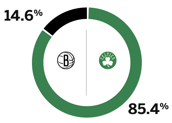 赛前,美媒ESPN预测本场比赛,凯尔特人胜率85.4%,篮网胜率14.6%。