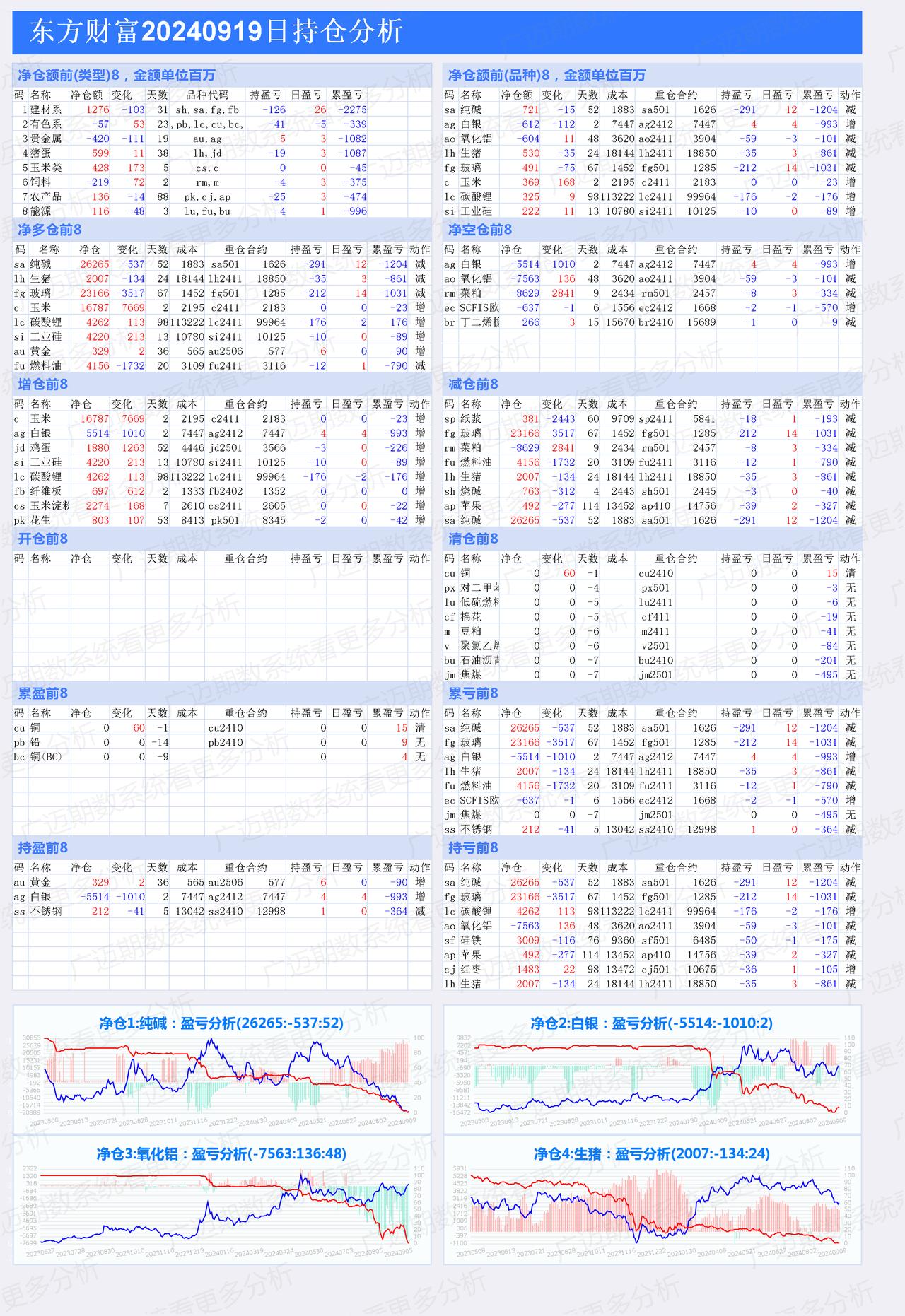 9月19日,徽商,东方财富席位商品期货多空净持仓数据分析。 徽商今天主要增持了尿