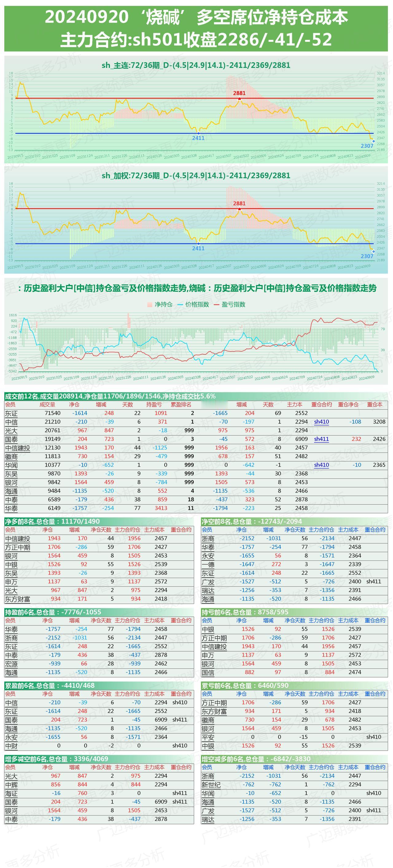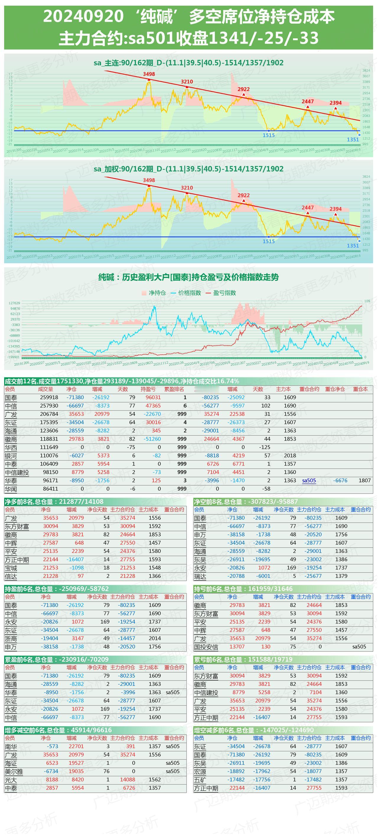 9月20日,玻璃,纯碱,烧碱期货多空席位持仓及行情分析。 玻璃纯碱有回落,各持玻