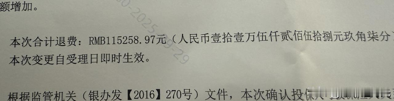 纠结再三 还是去平安保险公司,把自己交了16年的智盈人生退了 16年每年6000元,缴费96000元 退回115258元,16年利息19258 比预想的顺利 服务也很好,说退保,马上办理,一个劝说的人都没有[捂脸][捂脸] 退保才发现,原来每年都会扣除300元初始费,等于一直按5700元来投保的,不知道这种理解对不对。 当初买这个保险只为了帮一个才找到一份保险工作的全职妈妈 每个月要完成六单保险才不会被开除,那年她还有一份没办法完成任务找到了我 她才入职,保险条款完全不懂,她一说我一听,两个云里雾里的就签了字,为了给她保住这份工作。 没想到人懒的我这一交就是16年,再去问问,才知道不是交20年,是要交终身,而且也没什么保障。 最难过的是我帮了的朋友,前几年就肝癌去世了,我的保单负责人也不知道给了谁[泣不成声] 就这样吧,还算一分份不坏的保单,本金拿回来了还略有利息[害羞]也感谢我的朋友,比起退保连本金都拿不回来的保单,算很好了。