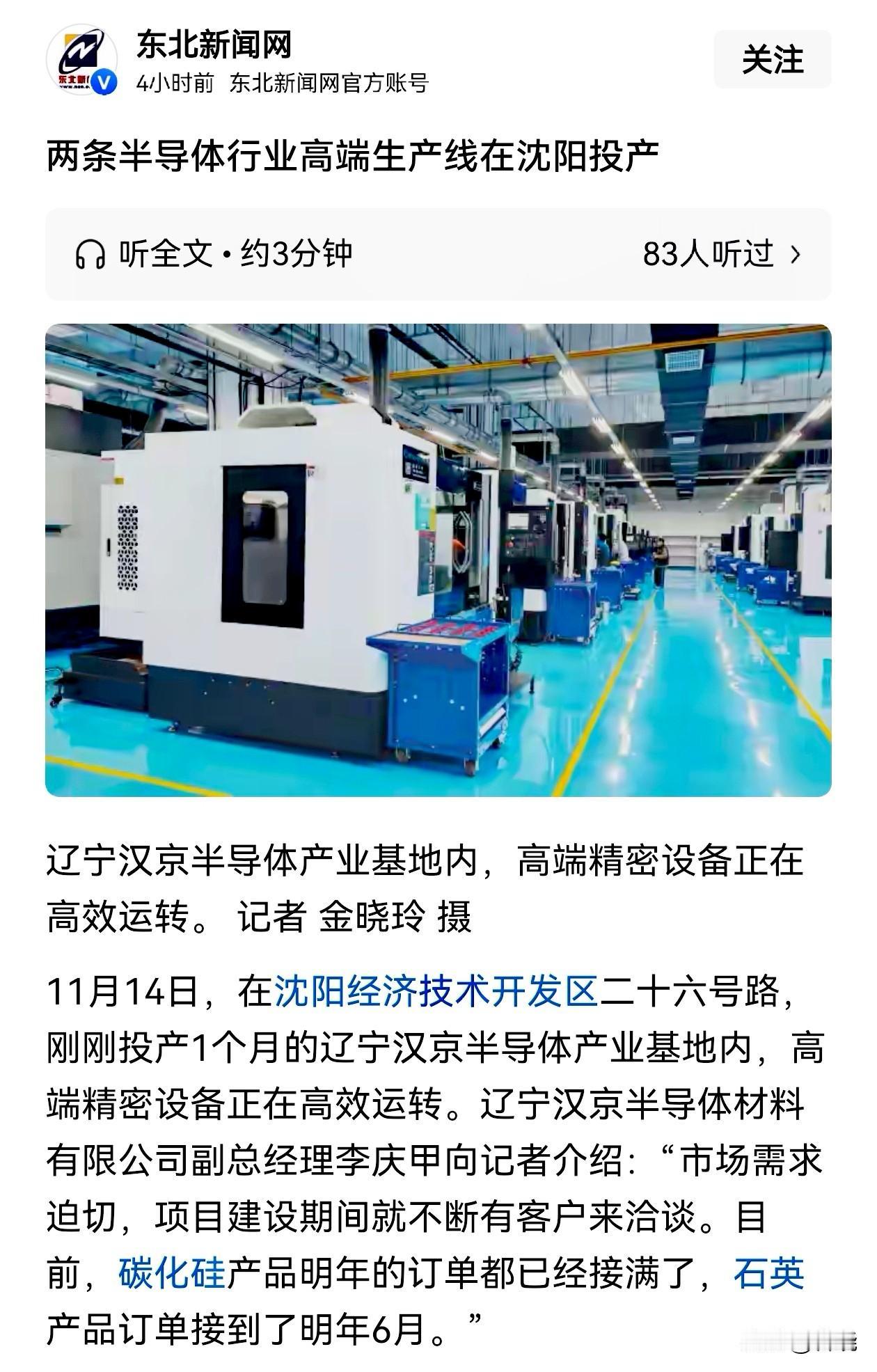 东北新闻网重磅报道:两条大规模半导体生产线在沈阳投产,沈阳作为国内知名半导体企业在东北的重要产业高地,其半导体产业规模和上、下游配套规模均居东北首位。 本次投产的高端半导体生产线,投产即满负荷,订单量源源不断。