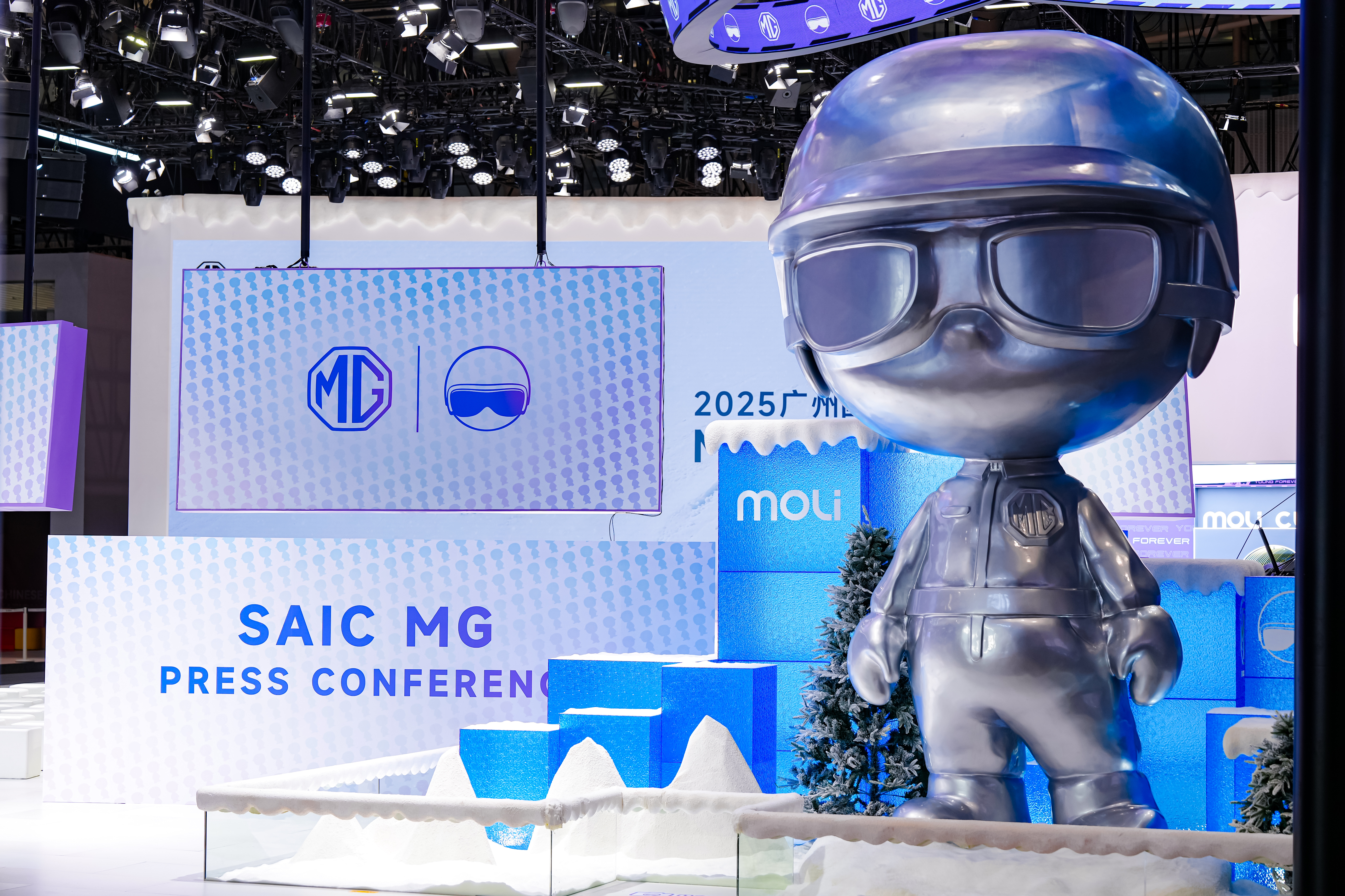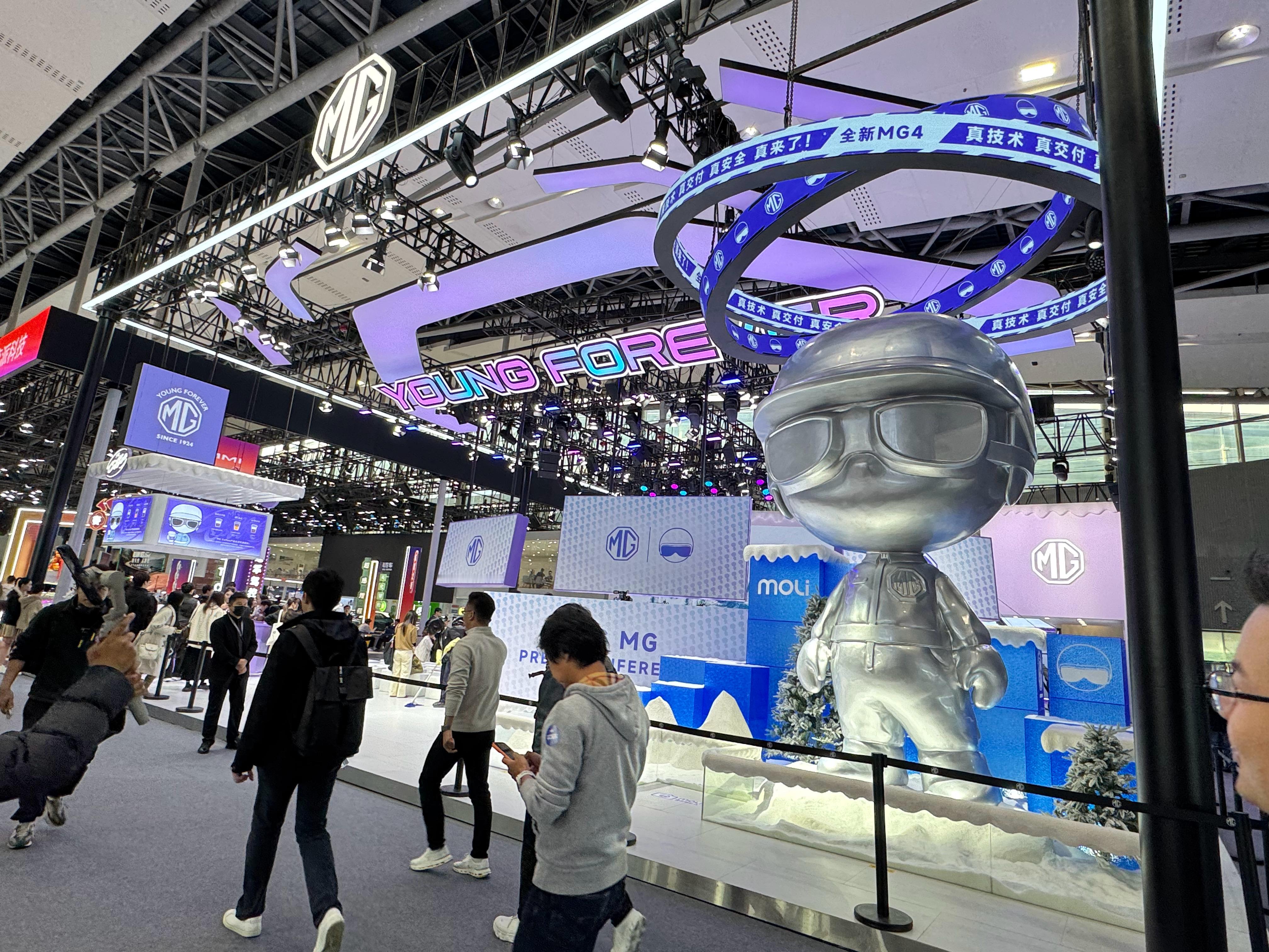 杰哥带你逛车展——MG展台!真是科技与潮流的双重暴击!C位就是全球首款量产半固态电池车型——全新MG4半固态安芯版,这个电池通过了中汽中心加码20%的最严苛测试,针刺、挤压、盐水浸泡、极寒冰冻、球击、高温火烧全都没起火没爆炸,安全感直接拉满。而且补贴价不到10万,半固态真交付,MG把高端电池技术打进了寻常用户的车库。更有意思的是MG发布了全新品牌IP——MOLI,复古赛车帽+防风镜的形象特别潮,展台上还有5米高巨型银色MOLI装置,简直是本届车展的打卡新地标。潮玩区、大手办、MG Coffee,把科技展台秒变潮酷街区。现场还可以近距离看半固态电池技术展区,冰雪氛围装置直接展示它无惧严寒的实力。逛完的感受就是:MG真的很懂年轻人,安全、智能、好玩全都给你,尤其是这台满配又安全的MG4,10万级纯电车里它的体验真是天花板!广州车展一定不要错过这个展台!