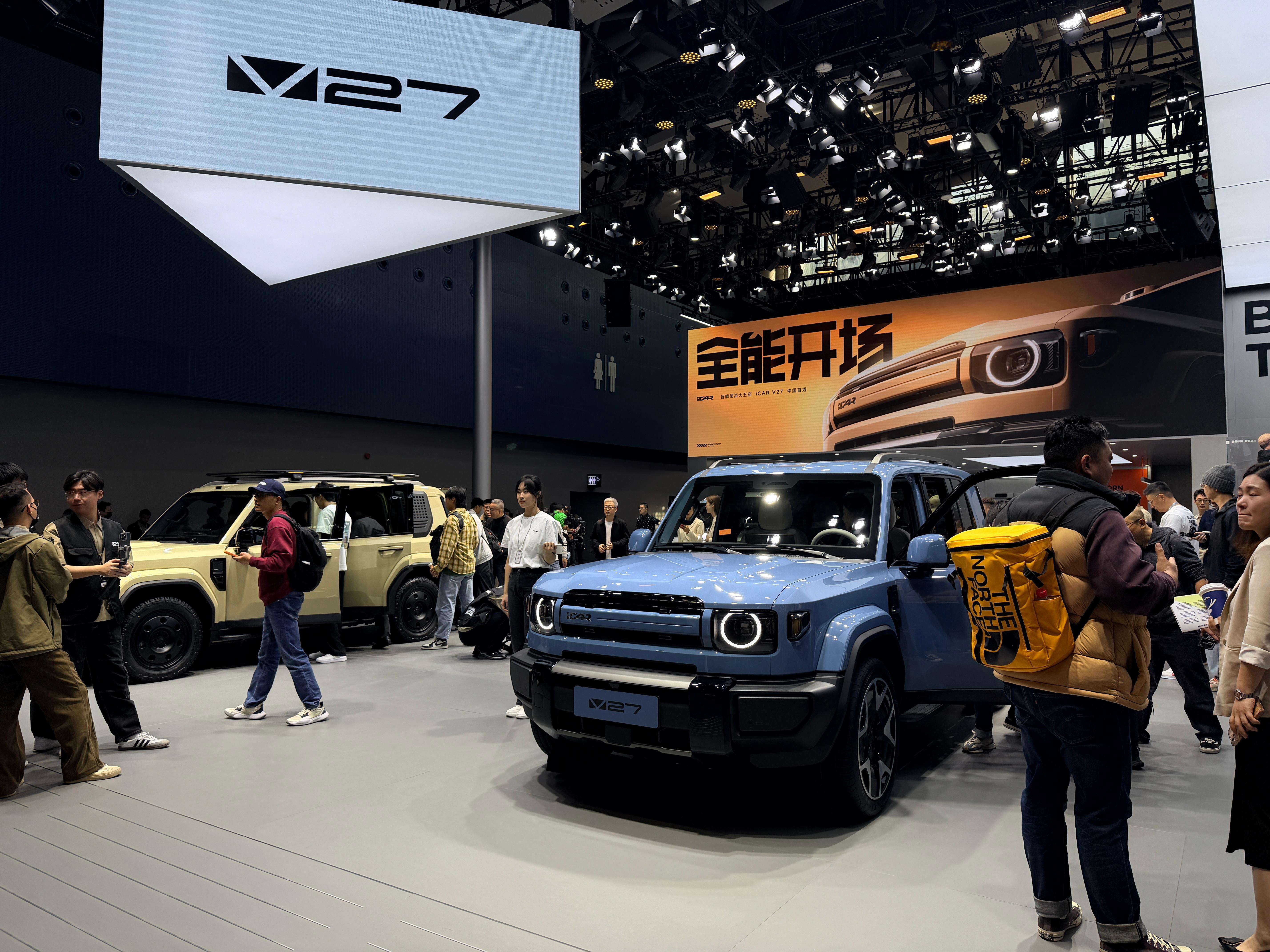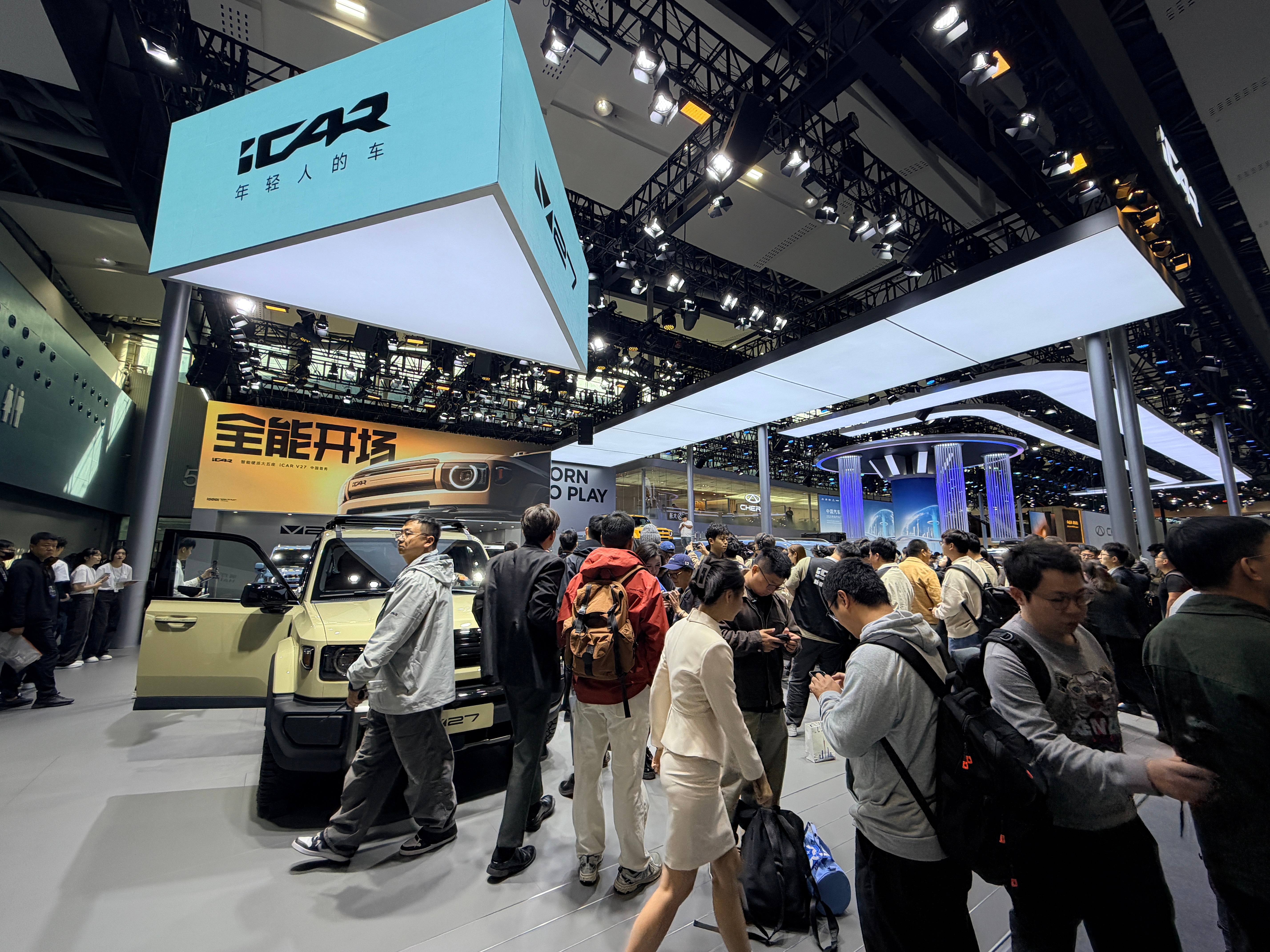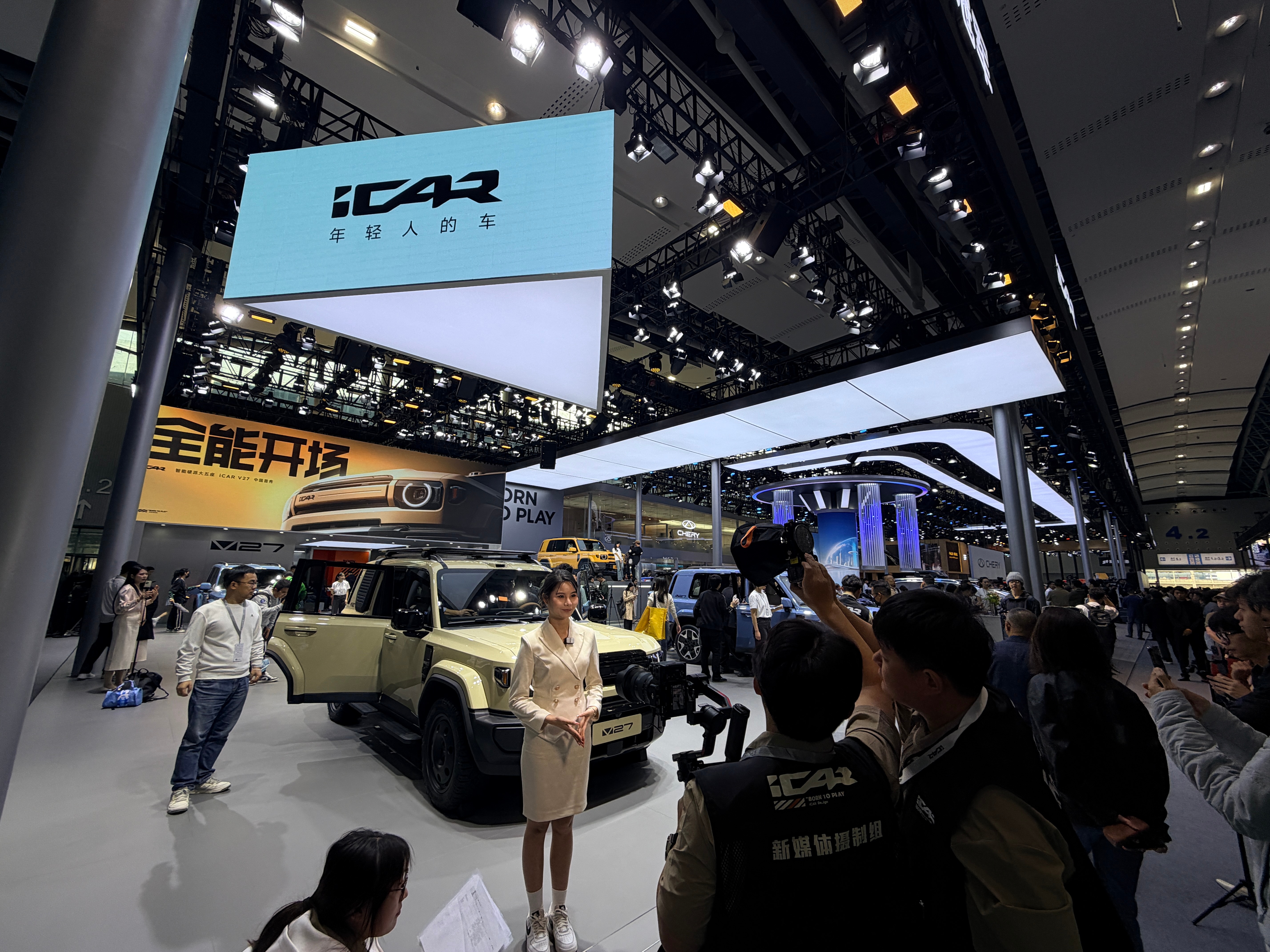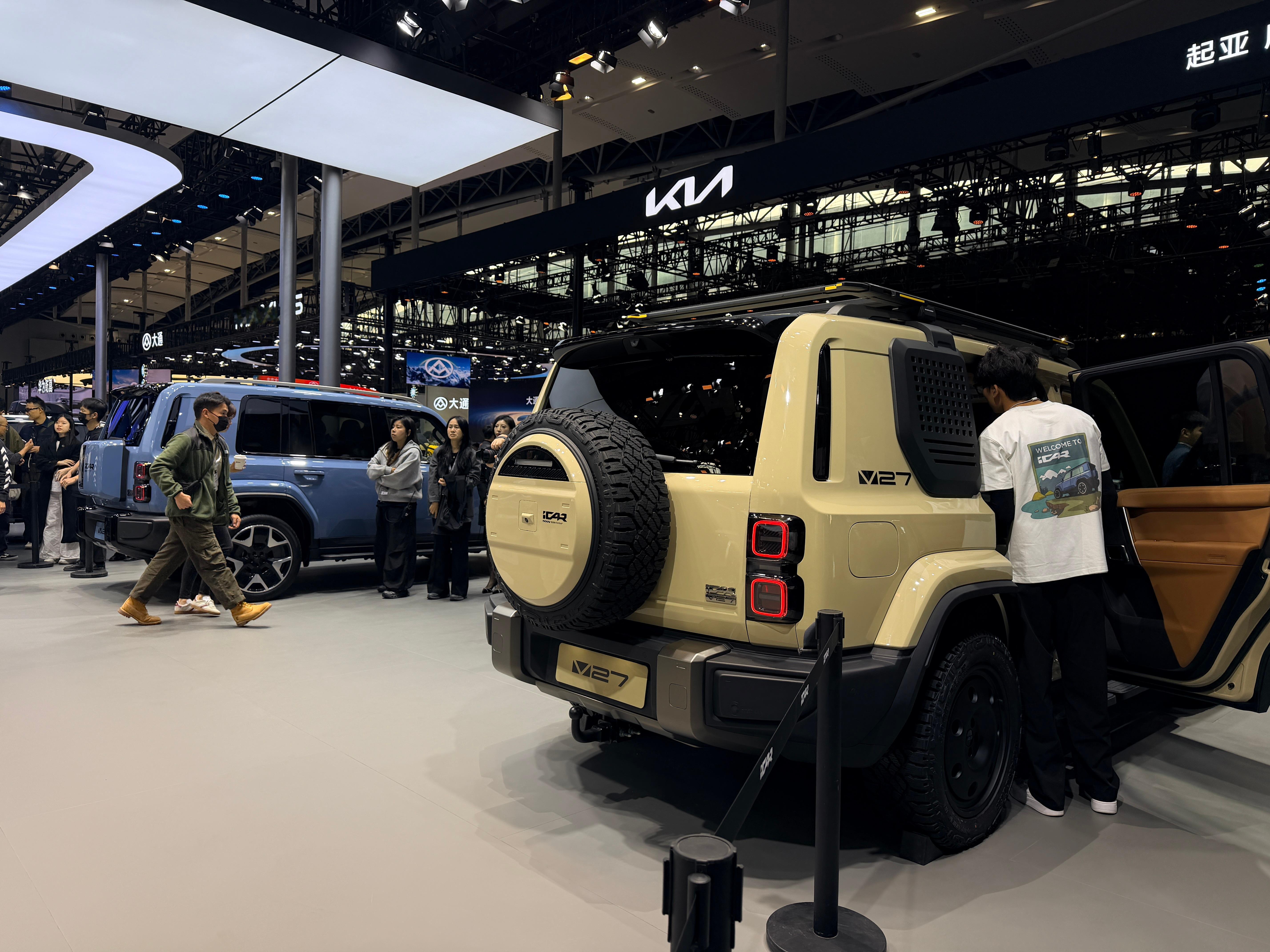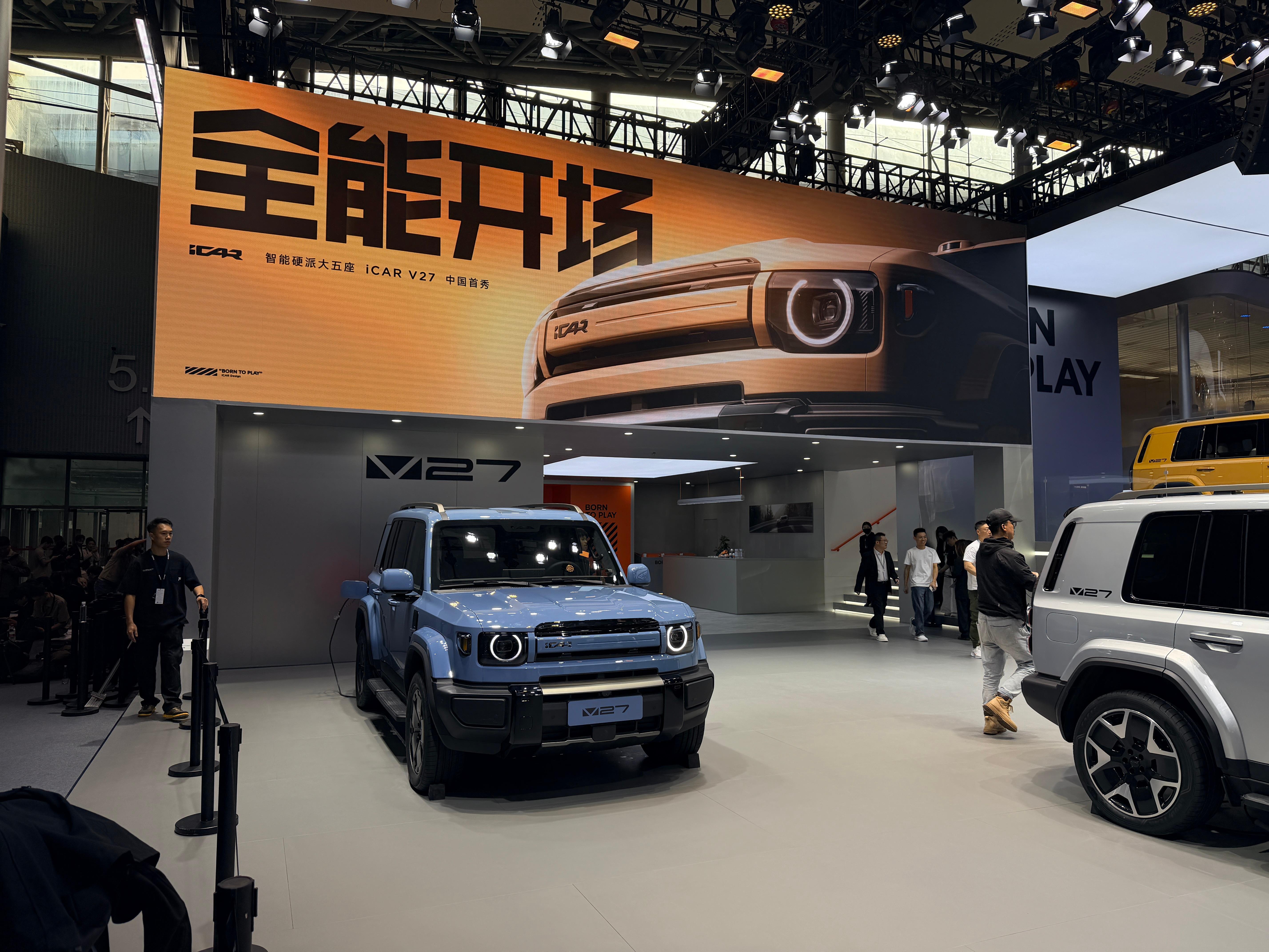 杰哥带你逛车展——iCAR展台,V27首次在中国亮相,真的是一眼就被它的硬派气质吸引住。现场看实车,比图片更有冲击力,长车身、短前悬、四轮顶到四角,比例特别硬朗,还有小书包版和备胎版两种尾门造型,能玩出个性,又不失精致。进到“星际座舱”,双天幕像科幻电影的飞船舷窗,坐在主驾高视野位置开阔得让人心情好。空间秒杀同级,储物细节多到数不过来,全家出行舒服又实用。动力这块,奇瑞黄金增程系统+前后双电机,零百5秒级的提速真叫一个畅快,纯电200km、综合1200km续航,公路稳、山道准,真是既能带家人出游也能自己撒野。再加上“猎鹰700”高阶智驾系统和中欧双五星安全标准,硬派不止是外形,更是骨子里的全能。总之,iCAR展台一定要来看看,这台V27不只是帅,还真有实力做到全家都爱。盲订12月开启,明年就能试驾,喜欢硬派SUV的别错过!