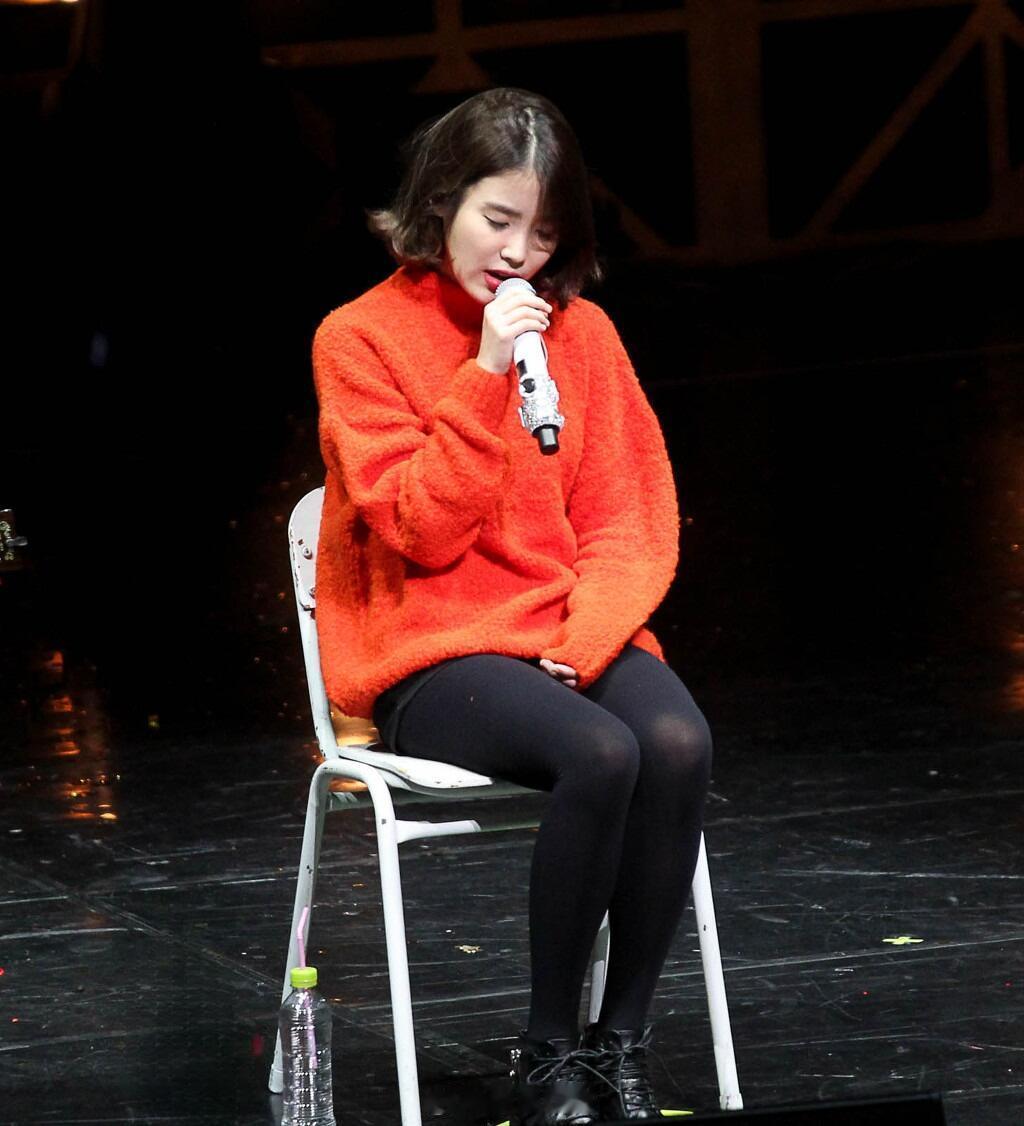 IU穿的黑丝膝盖的位置怎么这么透