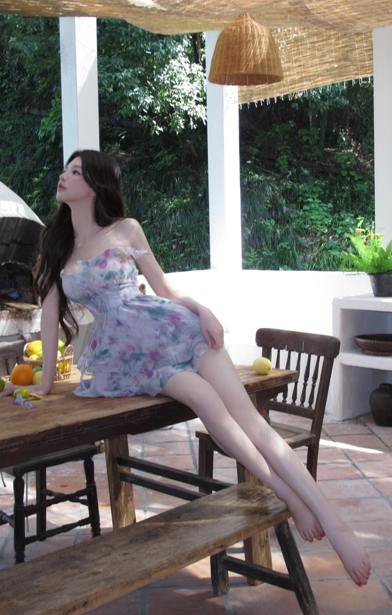 卢昱晓淡紫纱裙绽着繁花,抹胸设计衬出优雅肩线💜