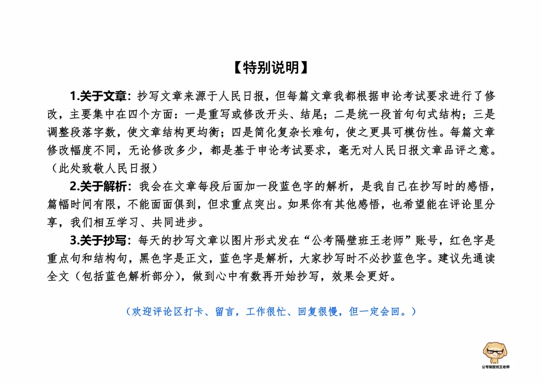 这里是公考隔壁班王老师独创的“每天半小时・申论80分”抄写团,欢迎加入我们!