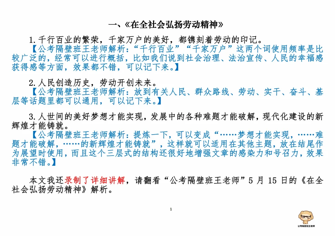 1. 《在全社会弘扬劳动精神》(5.15日,周一)