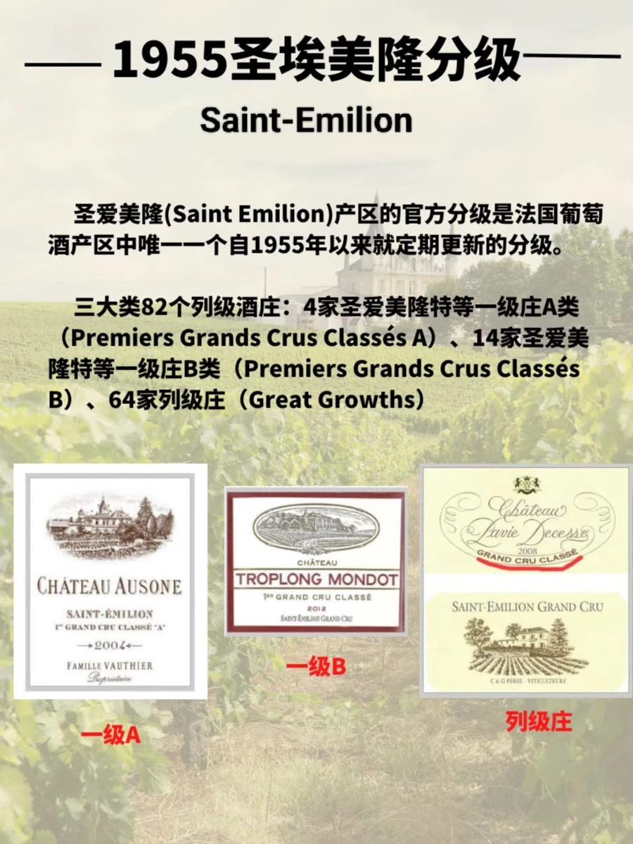 ⭐️圣爱美隆分级是法国葡萄酒产区中唯一一个自1955年以来就定期更新的分级。现行分级由2012年发布。