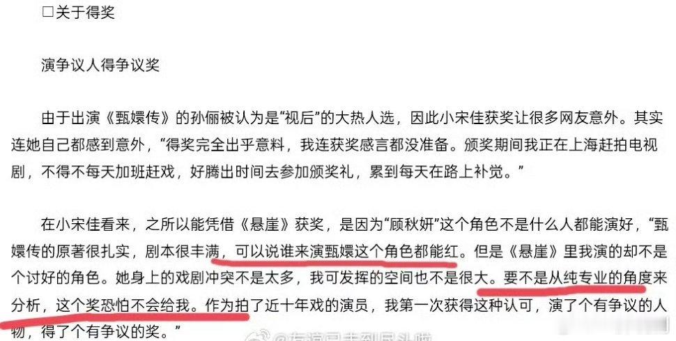 宋佳拿白玉兰奖接受采访说:谁来演甄嬛这个角色都能红,“要不是从纯专业的角度,这个