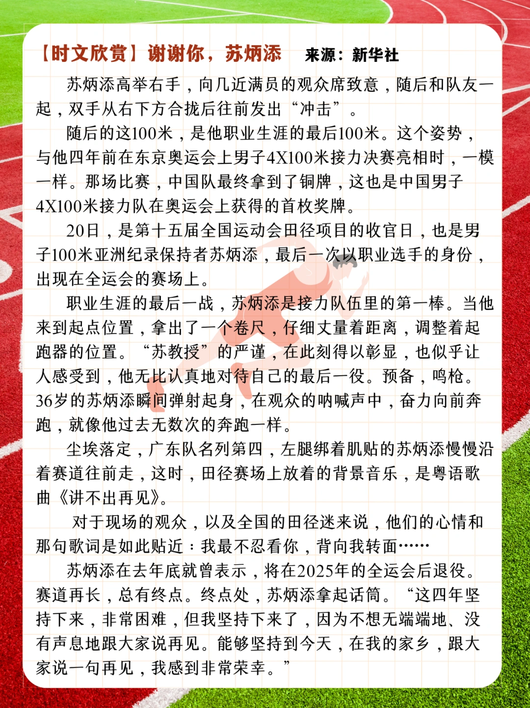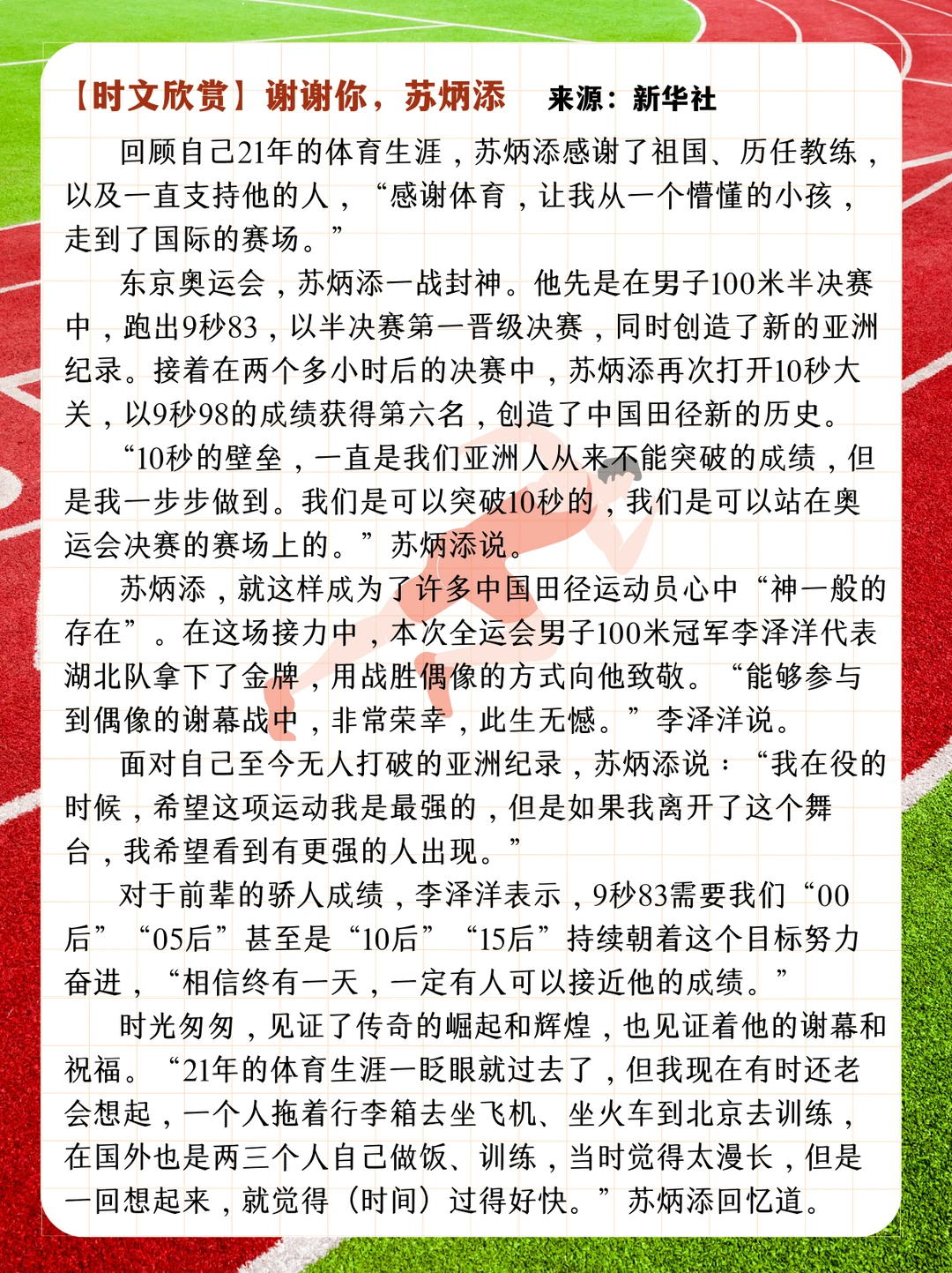 高考作文素材 热点 作文素材 高中议论文 作文素材积累 写作素材 全运会 十五届全运会 苏炳添 全红婵
