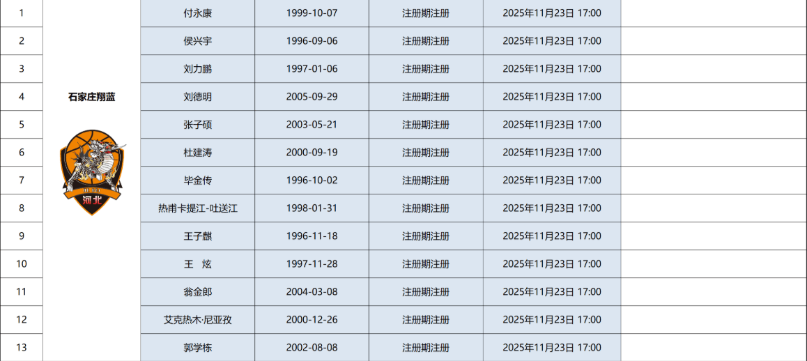 虎扑11月22日讯深蓝体育官方公布新赛季NBL石家庄翔蓝注册信息。