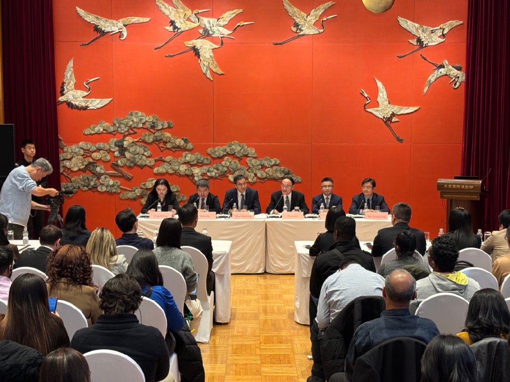 11月20日,中国公共外交协会在北京举办“临甲7号沙龙”专题吹风会,邀请朝阳区有关负责人和多家朝阳区科创企业代表,以“创新、开放与合作:新时代朝阳的蝶变与2030愿景”为主题,同中外记者互动交流。