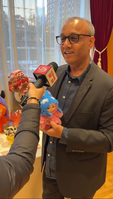 长着连心眉和虎牙的WAKUKU玩偶近年来持续火热。奇梦岛集团执行总裁、联合创始人施广强表示,希望从中国出发,让世界感受中国创意的温度与力量,成为全球潮玩艺术时尚IP集合平台。据了解,奇梦岛已经在北京、杭州、深圳设立设计中心,并加大原创投入。深圳卫视驻京记者注意到,现场不少外宾对奇梦岛的IP感兴趣,非洲毛里求斯广播公司制片人萨蒂恩对记者表示,自己的女儿非常喜欢收集这类玩偶,另外不同于迪士尼,中国的许多潮玩IP都蕴含着中华文化的寓意,这是个很新颖的点。