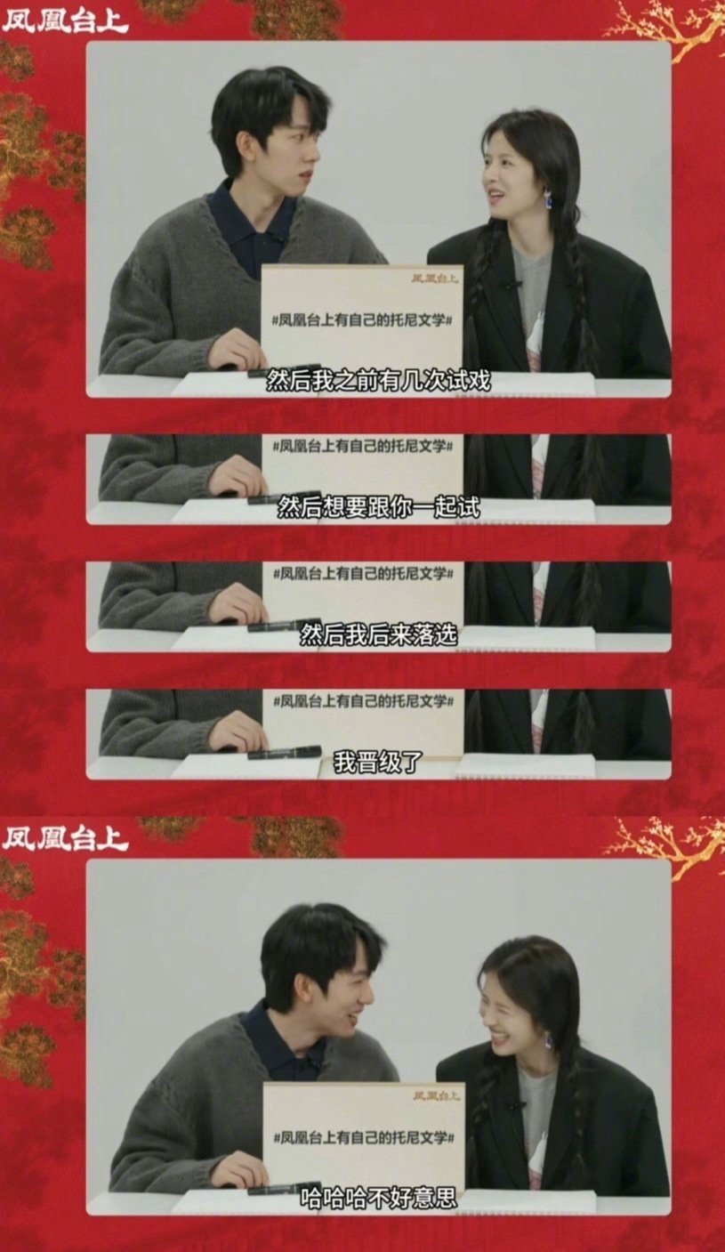 鹤男采访透露是张耀粉丝,看过他不少戏还曾想一起试戏,被淘汰时张耀“我晋级了”太逗,如今《凤凰台上》合作超吸睛,盼二搭