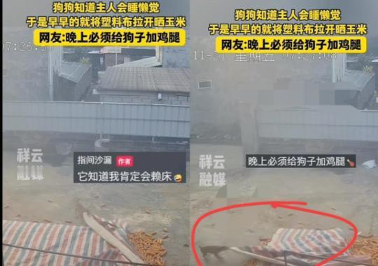 万万没有想到,广西,一狗主人这天早上睡了个赖觉,起床时太阳已经晒到了院子,此时狗主人才想起这院子里的苞谷要扯开篷布来晒,可主人出门来到院子里时,发现盖苞谷的篷布已经被扯开了。后调出监控才发现,原来是他家狗子见主人迟迟没起床,于是早早的将篷布拉开晒的苞谷。 那天清晨,他一觉醒来,窗外的太阳都快晒到院心的石磨上了,脑袋“嗡”的一下就清醒,前一天刚收回来的几大堆苞谷,还盖着厚厚的篷布堆在院子里,本打算早起扯开篷布晒透,这一睡过头,要是赶上变天或者返潮,苞谷发霉发芽可就全白费功夫了。 他连衣服都没来得及穿整齐,趿拉着拖鞋就往院子里冲,心里早已做好了面对潮湿苞谷的准备。可刚跨出堂屋门槛,他就愣在了原地:院子里的篷布早就被扯到了一边,堆得整整齐齐的苞谷摊开了一大片,金黄的颗粒在阳光下泛着光,正被晒得妥妥当当,连边角的苞谷都露了出来,完全没有被捂着的痕迹。 这下轮到他犯迷糊了,家里人都出门走亲戚了,邻居也没提前打招呼说要来帮忙,是谁这么贴心帮他把篷布扯开了?他围着院子转了两圈,没看到半个人影,只有自家的狗子蹲在苞谷堆旁,尾巴轻轻扫着地,见他出来,还摇着尾巴凑上前,用脑袋蹭了蹭他的裤腿,一副“快来夸我”的模样。 他越想越觉得蹊跷,干脆回屋调出了院子里的监控,画面一播放,他当场就笑出了声,眼眶却有点发热。原来,天刚蒙蒙亮的时候,狗子就蹲在苞谷堆旁,时不时抬头往他的窗户方向望,见迟迟没动静,它就绕着篷布转了两圈,随后用鼻子顶着篷布边缘往上拱,拱出一道缝后,立马叼住篷布角往后拽。 篷布被露水打湿后有些沉,狗子的动作格外笨拙,拽不动的时候就停下来甩甩头,换个角度再继续,有时还会用前爪按住篷布,配合着嘴巴一点点扒拉。阳光慢慢爬过院墙,它就这么来来回回忙活了半个多小时,终于把大半块篷布都扯到了一边,确保苞谷能被阳光晒到。做完这一切,它就蹲在旁边守着,像个尽责的“小管家”。 “这狗真是没白养!”主人看着监控里认真忙活的狗子,心里又暖又感慨。很多人听说后都夸这狗聪明,甚至说它“通人性”,其实狗子哪懂什么“晒苞谷防发霉”的道理,它只是把主人每天的习惯刻在了心里。自从家里开始收苞谷,主人每天天刚亮就会去扯篷布,扯的时候还会顺便摸摸蹲在旁边的它,这些重复的画面,都被狗子默默记在了心里。 其实宠物带给人的温暖,从来都不是什么惊天动地的大事,就是这些日常里的小细节。主人睡懒觉耽误了农活,狗子就替他把篷布扯开;主人干活累了,它就安静地陪在身边;主人不开心了,它就用脑袋蹭蹭手撒娇。这些日积月累的小事,慢慢变成了彼此之间的默契。 这只广西的暖心狗,用一顿忙活的身影告诉我们,陪伴不需要多么复杂的形式。它不会说话,却用行动诠释着“这个家有我在”。而主人那句“这狗没白养”,大概就是对宠物最好的认可,也是人与动物之间最温暖的羁绊,你用一生陪伴我,我用余生疼爱你。 信息来源:祥云融媒