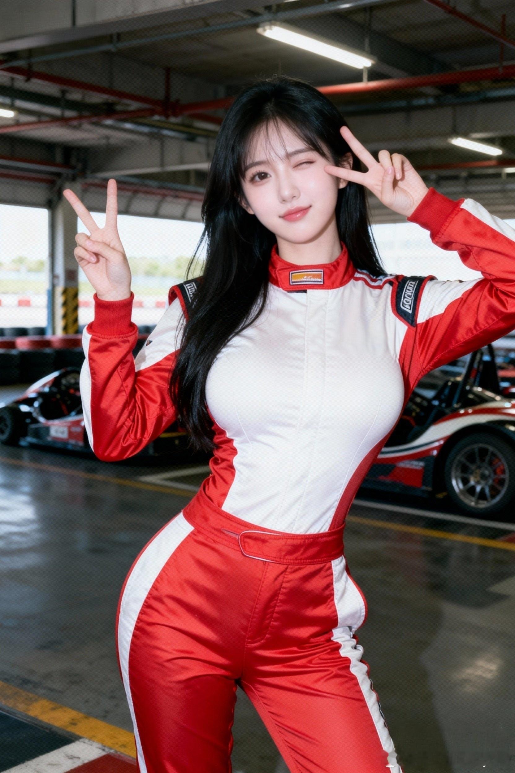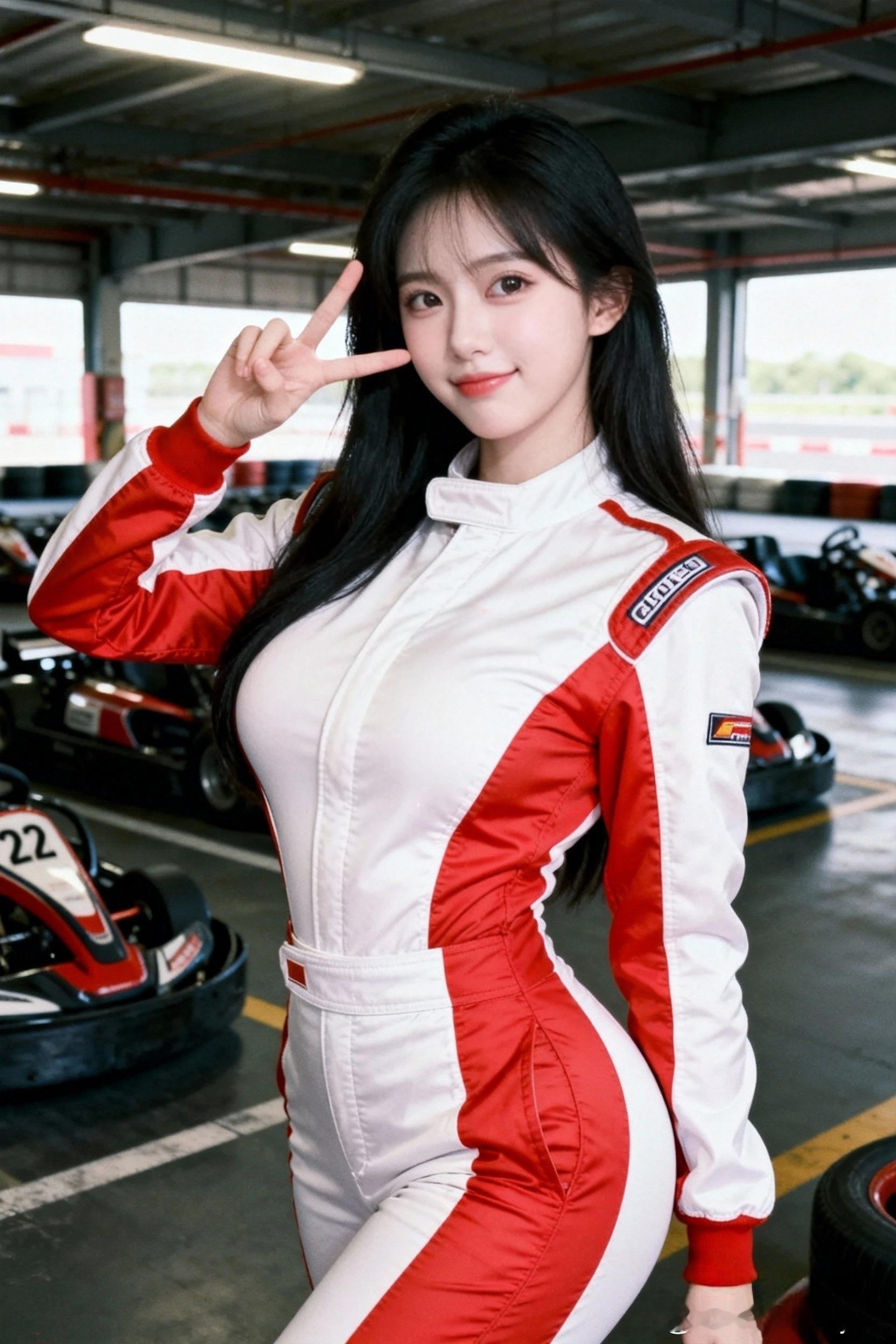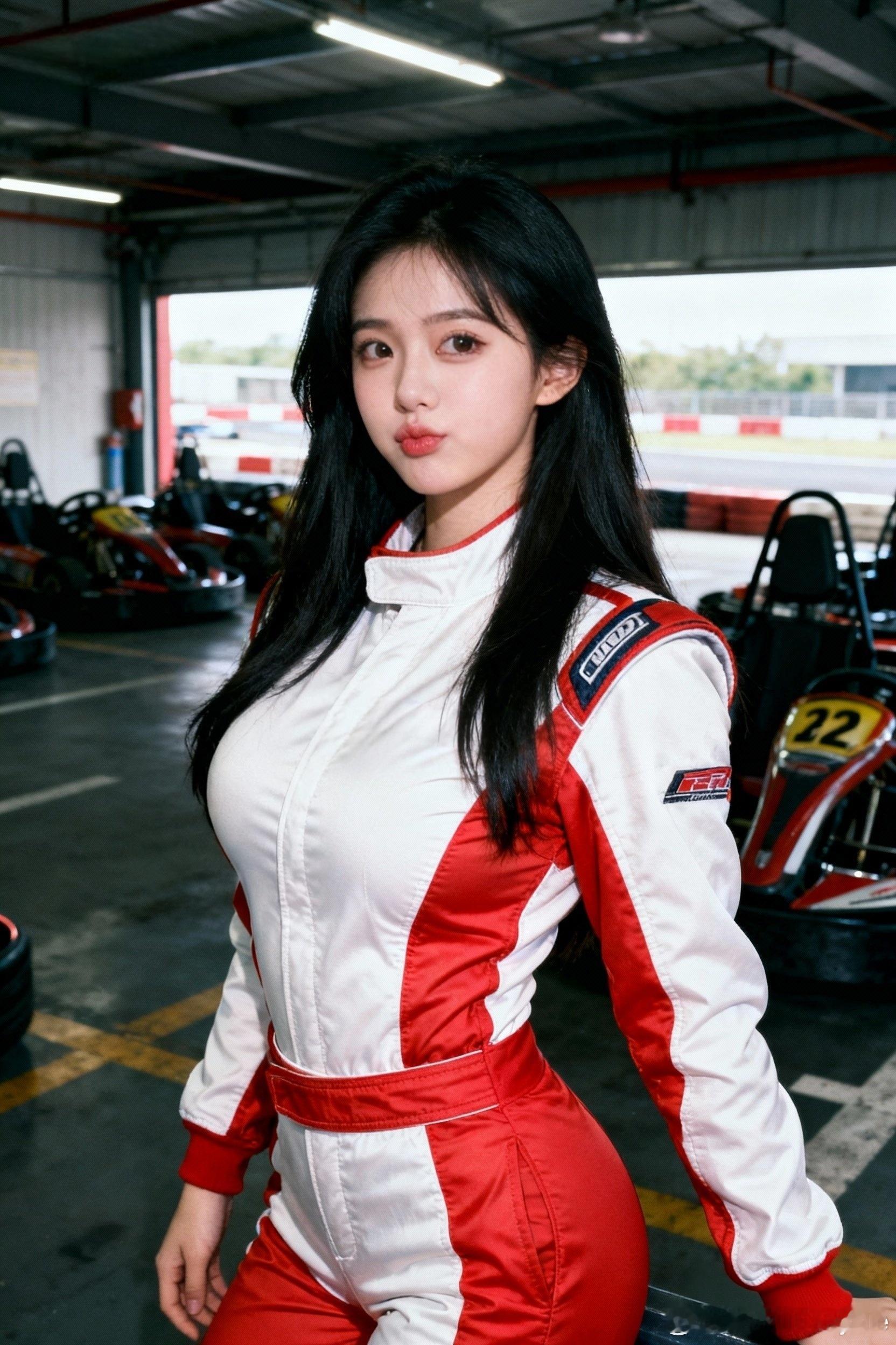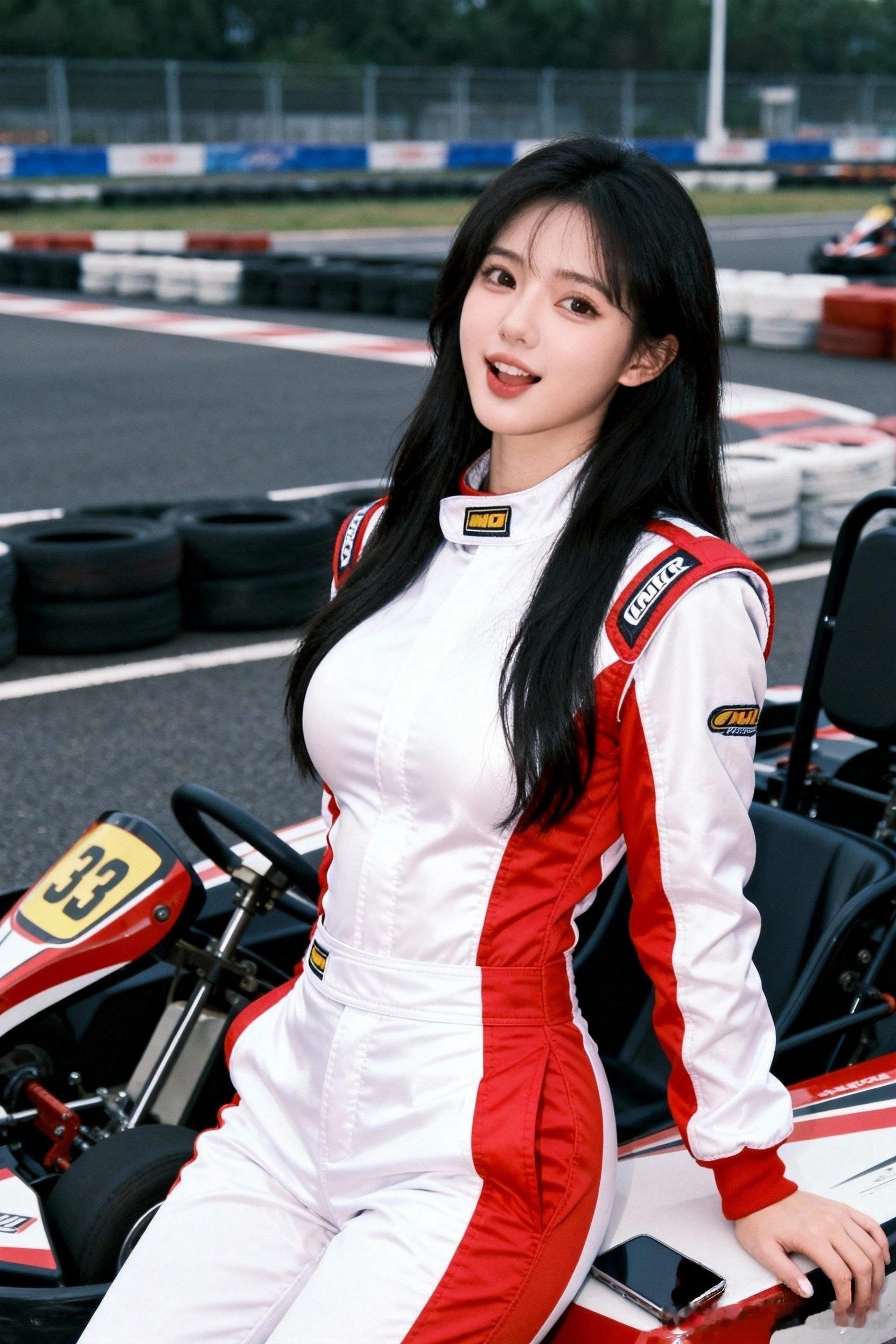那件赛车服好看?其实我也不知道开卡丁车穿赛车服,好像有点小可爱,也有点小性感噢!