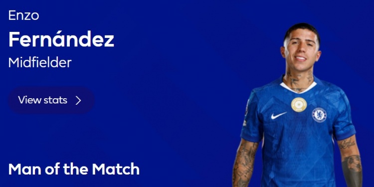 本场比赛恩佐在最后时刻破门锁定胜局,赛后他也当选英超官方球迷票选全场最佳球员。
