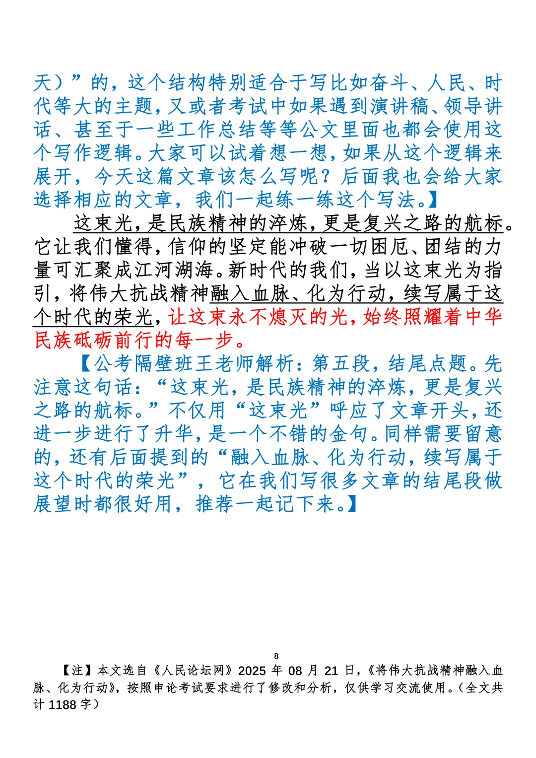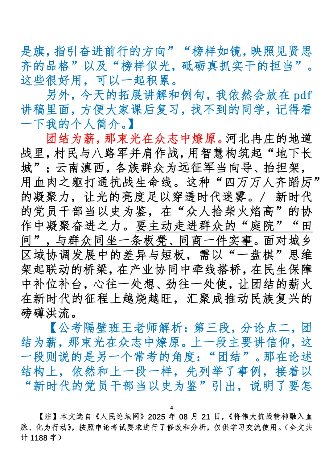 如何抄写:每日抄写文章发在“公考隔壁班王老师”账号,红色字是重点句和结构句,黑色字是正文,蓝色字是解析,大家抄写时不必抄蓝色字。建议先通读全文,做到心中有数再开始抄写,效果会更好。 关于文章:抄写文章来源于人民日报,但每篇文章我都根据申论考试要求进行了修改:一是重写或修改开头、结尾;二是统一段首句句式结构;三是调整段落字数,使文章结构更均衡;四是简化复杂长难句,使之更具可模仿性。每篇文章无论修改多少,都是基于申论考试要求,毫无对人民日报文章品评之意。(此处致敬人民日报)