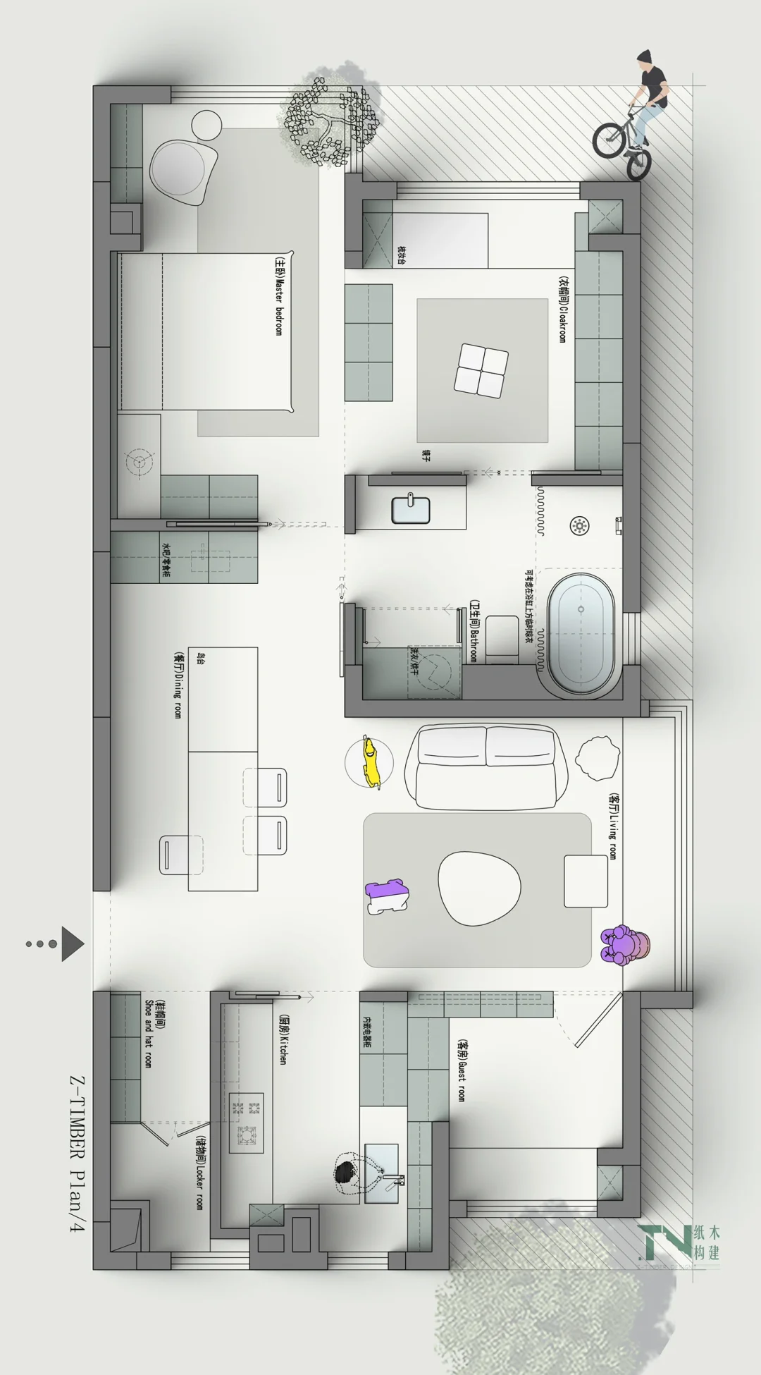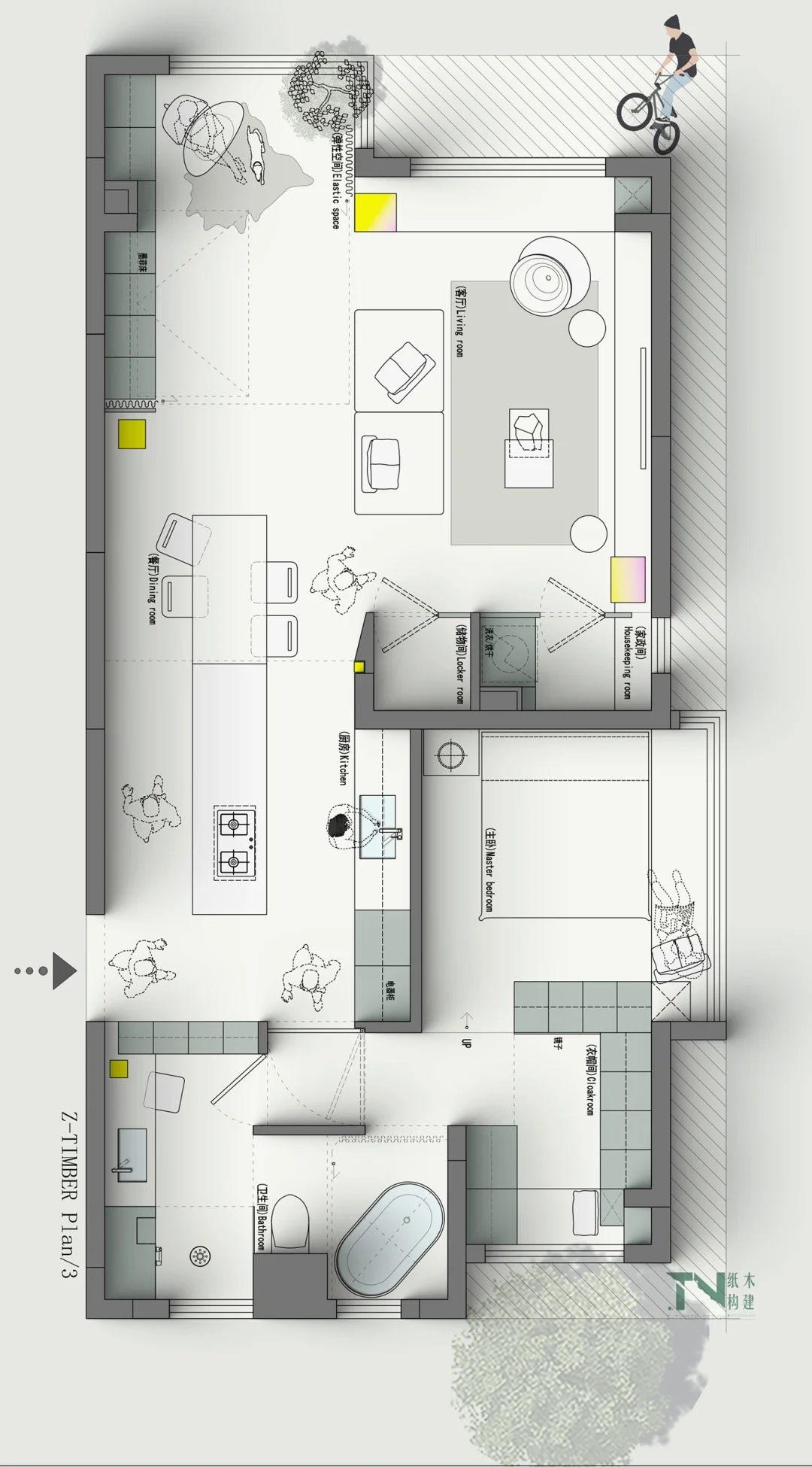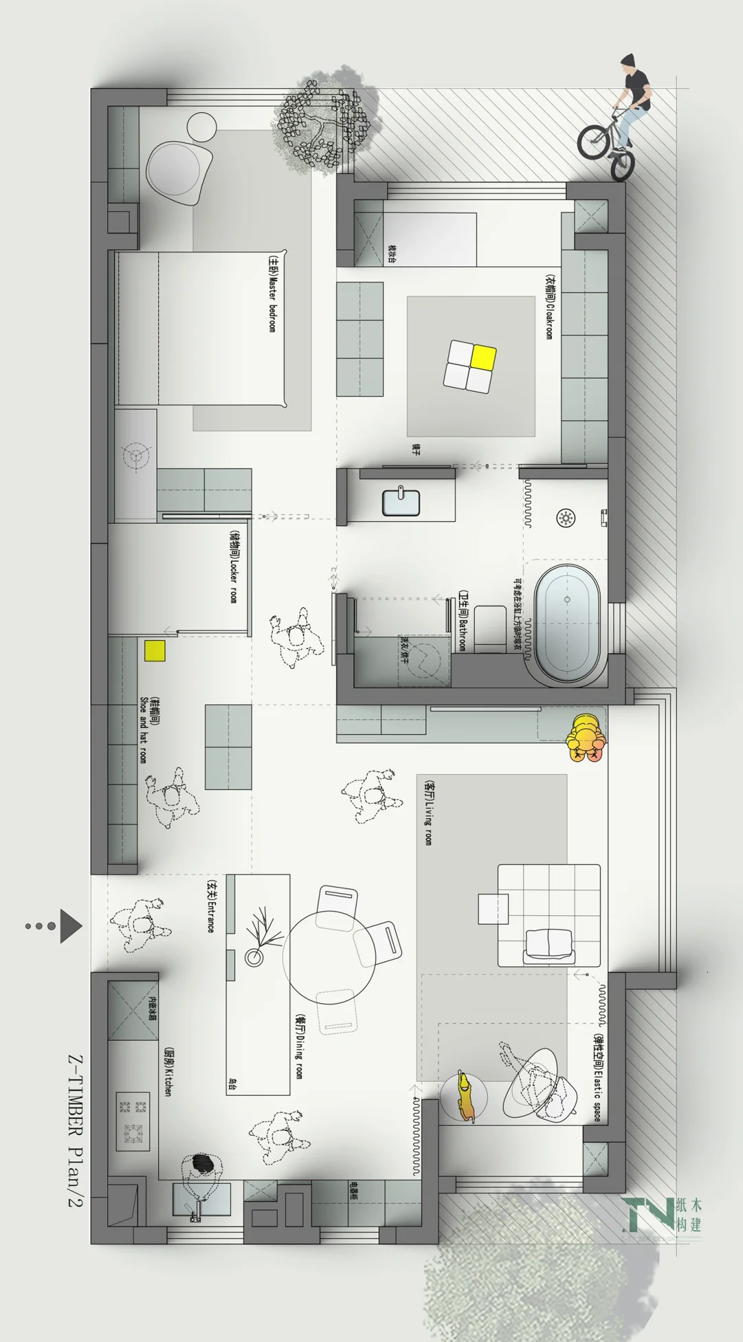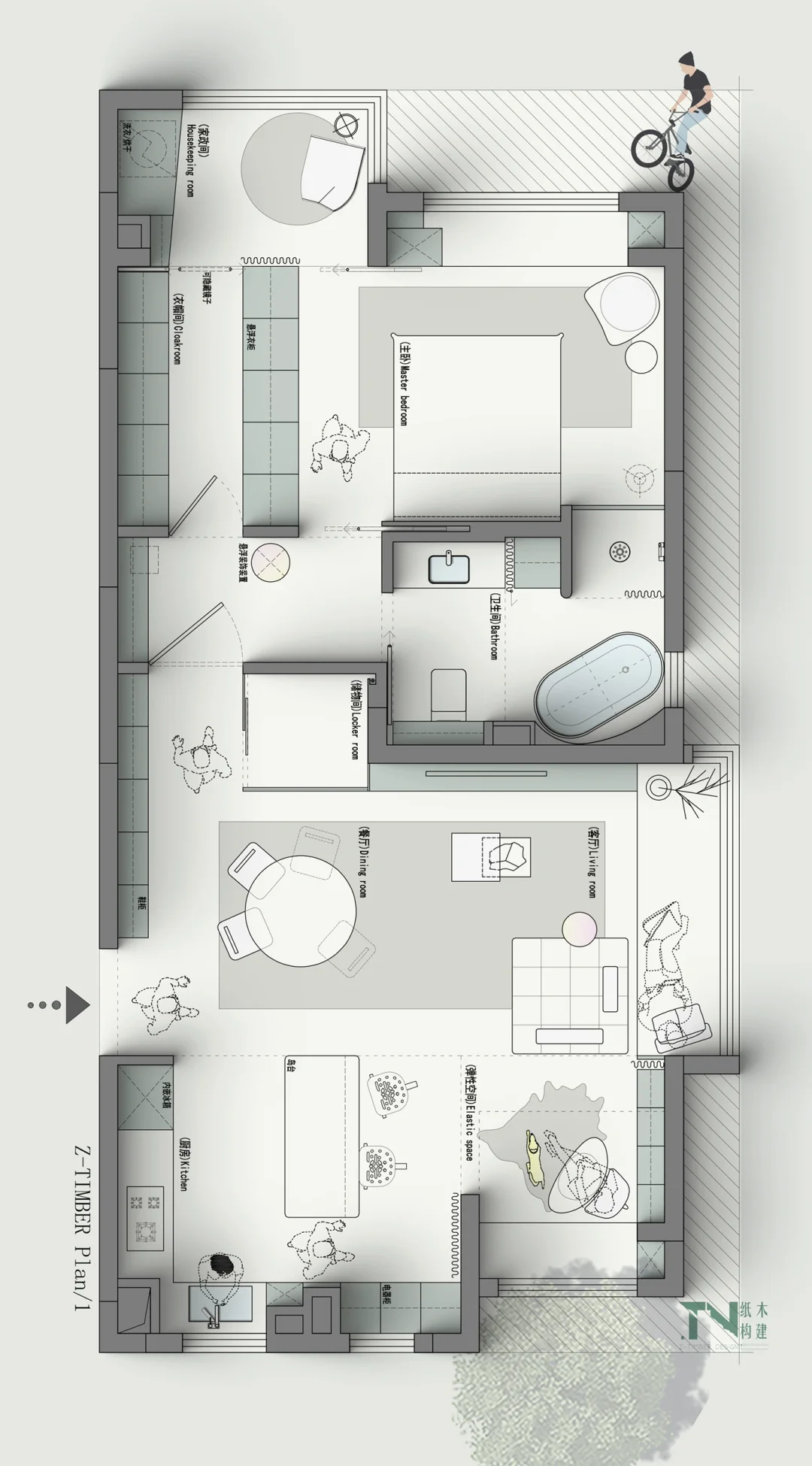 家庭成员:🤴与小柯基 设计需求: 关于功能分区: 1、厨房与餐厅(开放式厨房、希望有个中岛台) 2、客厅(开阔眼界) 3、主卧(衣帽间储物收纳空间大) 4、卫生间(增大空问、希望有个 5、杂物间 6、家政间 7、灵活空间(可做零时客房)