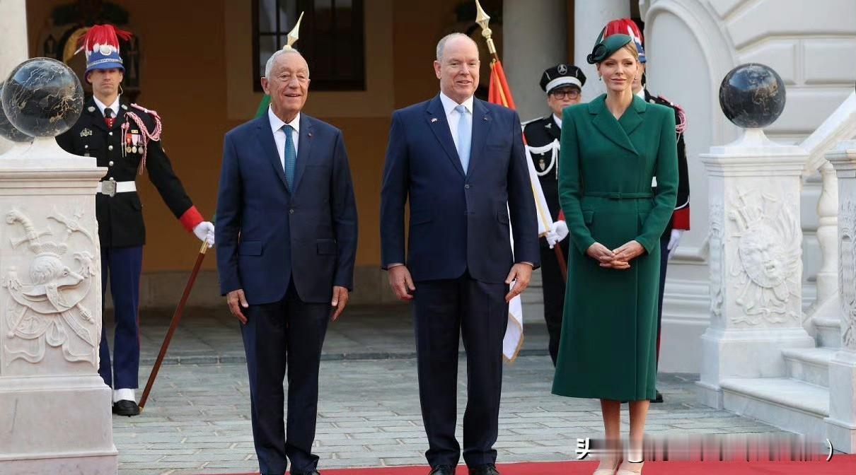 迎接葡萄牙的访问,夏琳的绿色连衣裙配黑色大衣好评!后来又换了一双高跟鞋!