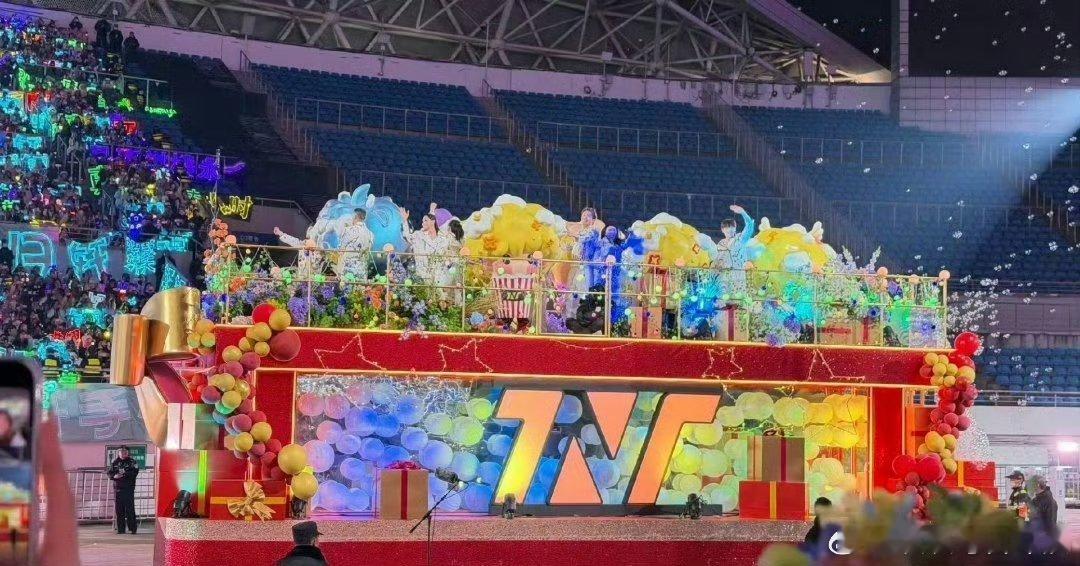 时代少年团演唱会,花车巡游居然时代少年团全部没上,只有玩偶和伴舞,内娱第一次