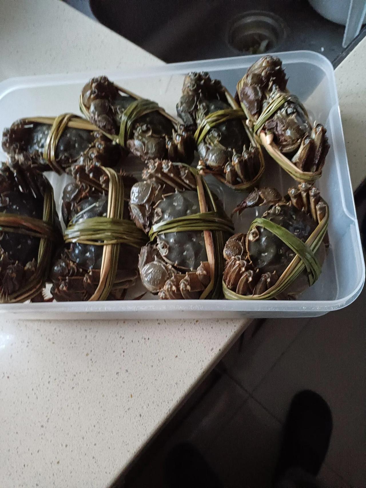 江南苏城一位晚辈寄了一箱大闸蟹过来 …… 12 只,六对(全部用柴草捆扎) …