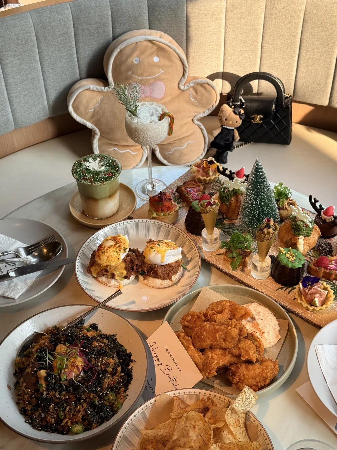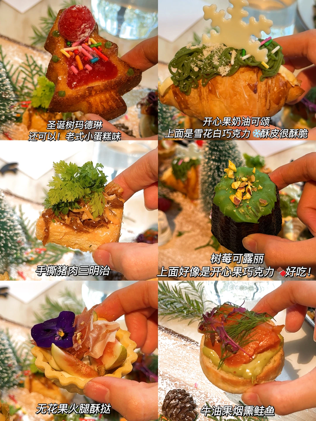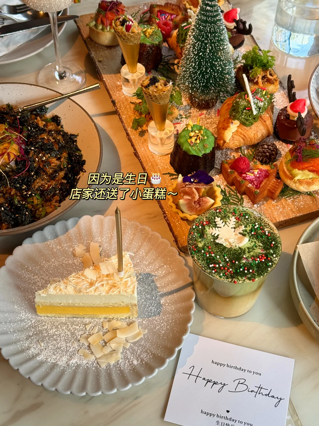 哇一到11月上海就进入了圣诞月! 尤其是淮海中路、武康路地带 街边已经开始逐渐长出“圣诞树🎄”了哦! 这次果果的精选餐厅是这家最近蛮火的the cue 太适合周末和小姐妹来打卡拍照吃漂亮下午茶啦☕️ ▫️推荐菜品 1️⃣圣诞下午茶☕️256 甜点、咸点共8颗!一端上来真的是艺术品存在🎄华丽丽的和姐妹先拍了好多照片! 我觉得这里好吃的是树莓可露丽~外壳是焦糖脆壳,咬开后里面是奶香的哏啾啾的布丁🍮法芙娜慕斯蛮特别做成了驯鹿形状,饼干底+巧克力慕斯,吃多了比较腻[汗颜R]虾仁黑鱼籽蛋筒做的略咸,感觉他家咸点还可以再优化一下! 2️⃣秘制炸鸡🍗68 现炸的一端上来就被香味占领了~他家采用的是无骨鸡所以吃起来比较爽!旁边配了一个很特别的酱料,搭配着吃很上头 3️⃣海胆牛舌火爆辣炒饭🥘98 放了好多海苔碎、鱼籽,个人感觉微微辣没有到“爆辣”的程度🌶️牛舌片的很薄伴着米饭吃太香啦! 4️⃣猪肉班尼迪克🍳78 手撕猪肉腌制稍微甜了一些~但是整体面包体很松软,我个人还蛮喜欢的,每次都超级享受切开溏心蛋的过程[心心眼R] 饮品点了圣诞限定饮品🍸因为是生日所以店家贴心的送了一块生日蛋糕!超惊喜呀[哇R]吃完和姐妹直接步行300米citywalk武康路~ 秋冬天的上海竟然也超适合压马路的🚶快