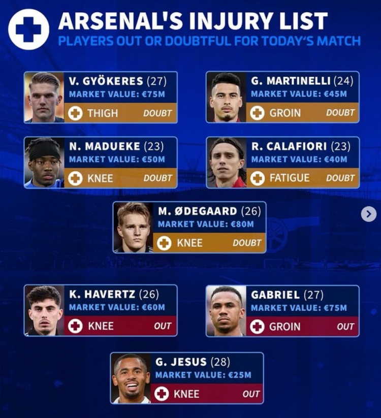 阿森纳前锋伤好多,热刺中场伤好多🌚