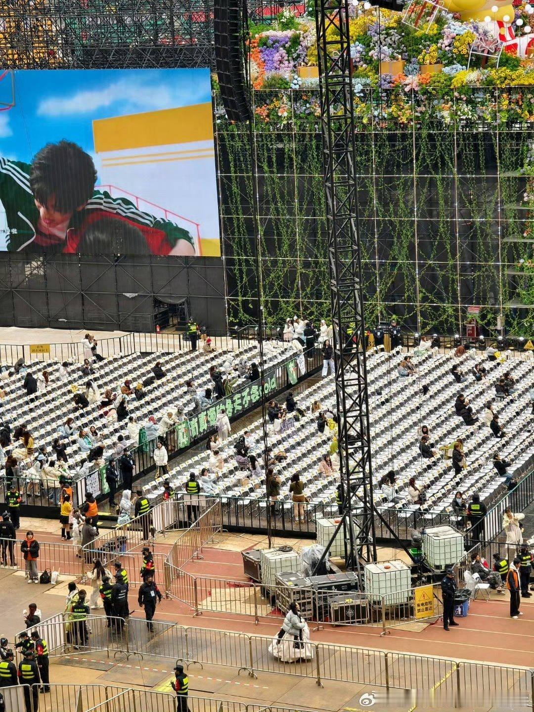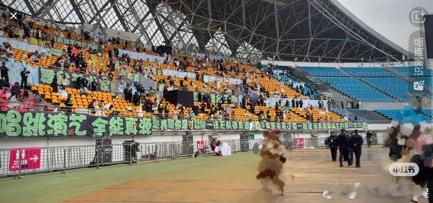 张真源六周年演唱会粉丝已经早早的在栏杆挂了绿色灯牌,而且每一条都好长!今晚是不是