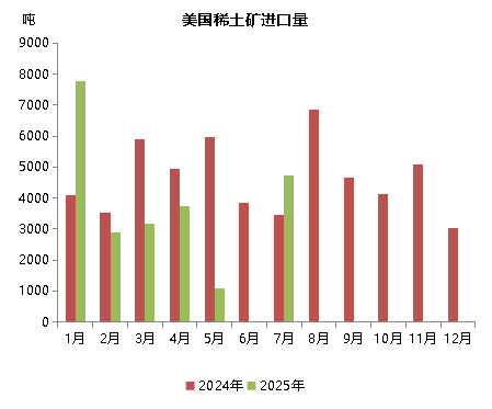 4月份美国MP公司发声明其已经停止向中国出口稀土精矿以来,6-10月份从美国进口稀土精矿量清零,仅7月份有一批集中进口。