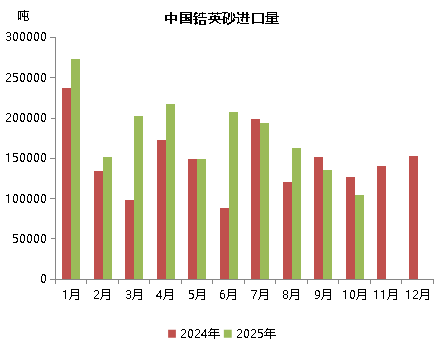 2025年1-10月份,我国进口179.8万吨锆英砂,同比增加21.6%。