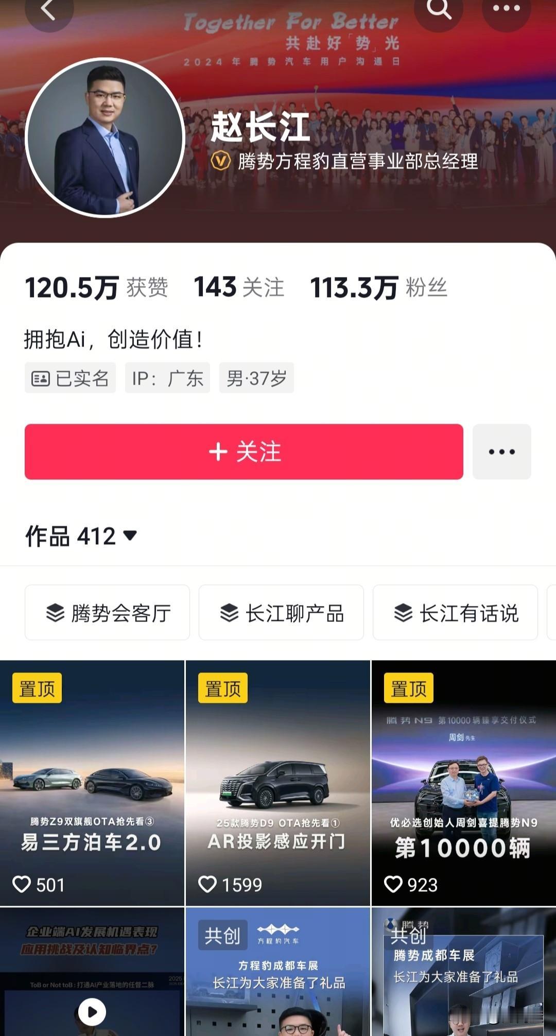 赵长江,比亚迪的功臣,很多人以为他从比亚迪离职了。原来离职是个乌龙,不但没离职,还升官了。以前腾势汽车总经理,现在是腾势方程豹直营事业部总经理。而且赵长江赵总,还是比亚迪Ai 的负责人。赵总今犹在,我相信比亚迪未来在Ai智能这块,在赵总的带领下,会越来越好。比亚迪是新能源汽车的王者,未来车机接入Ai,整车会更加智能,便捷。更好的服务于人类,比亚迪加油,中国汽车人加油。