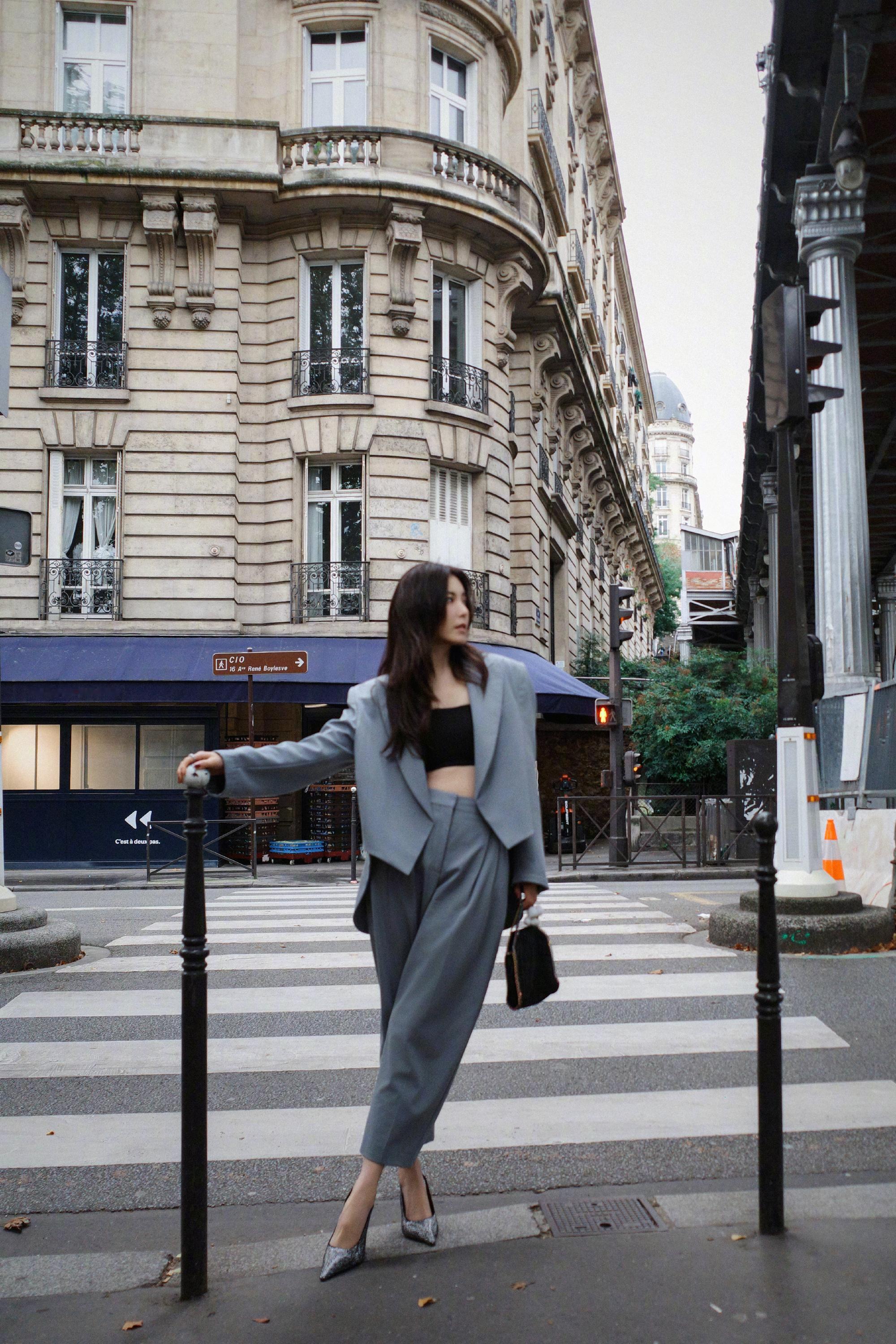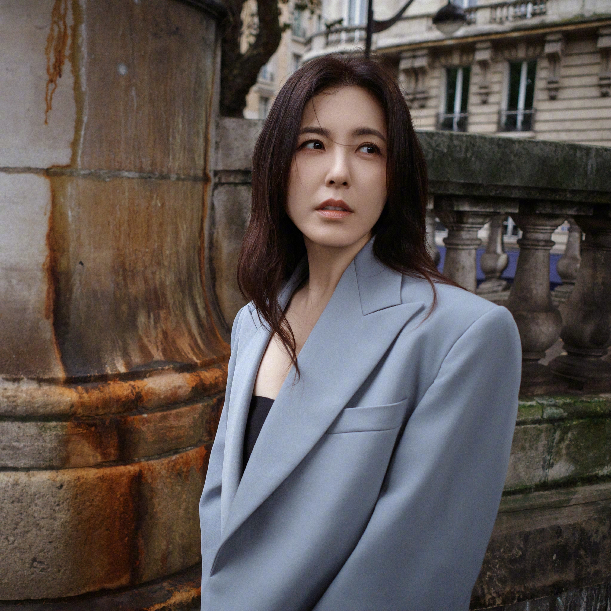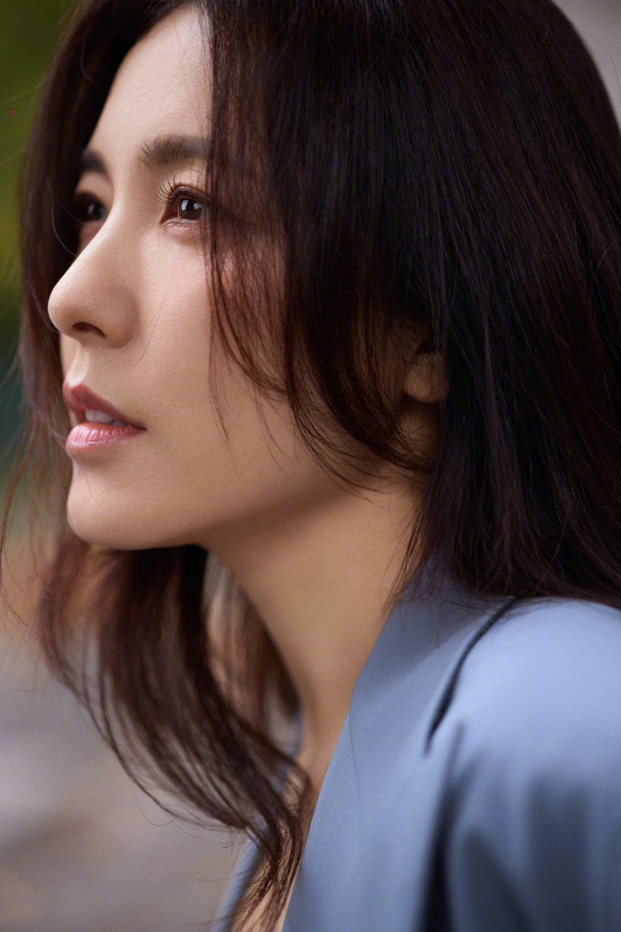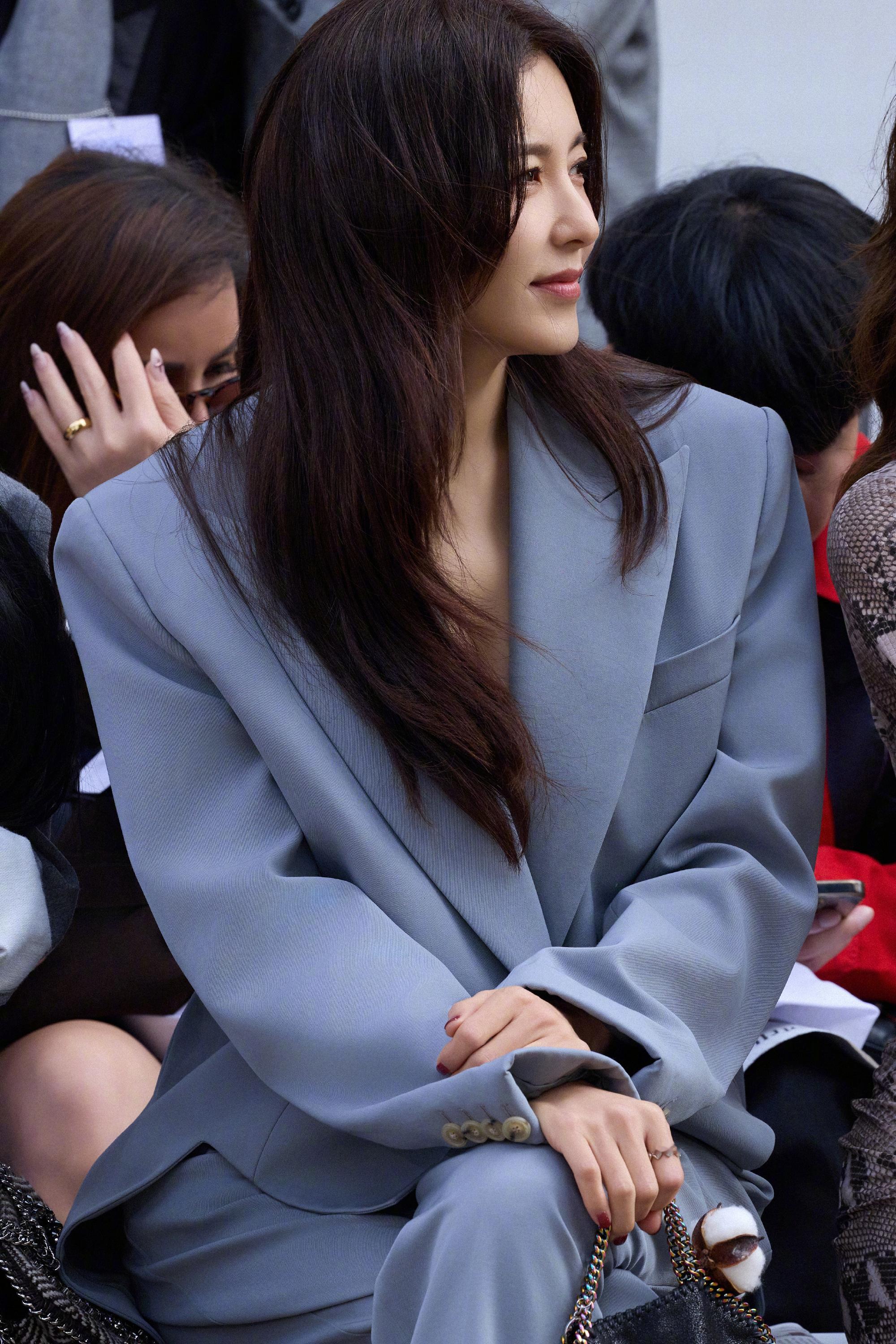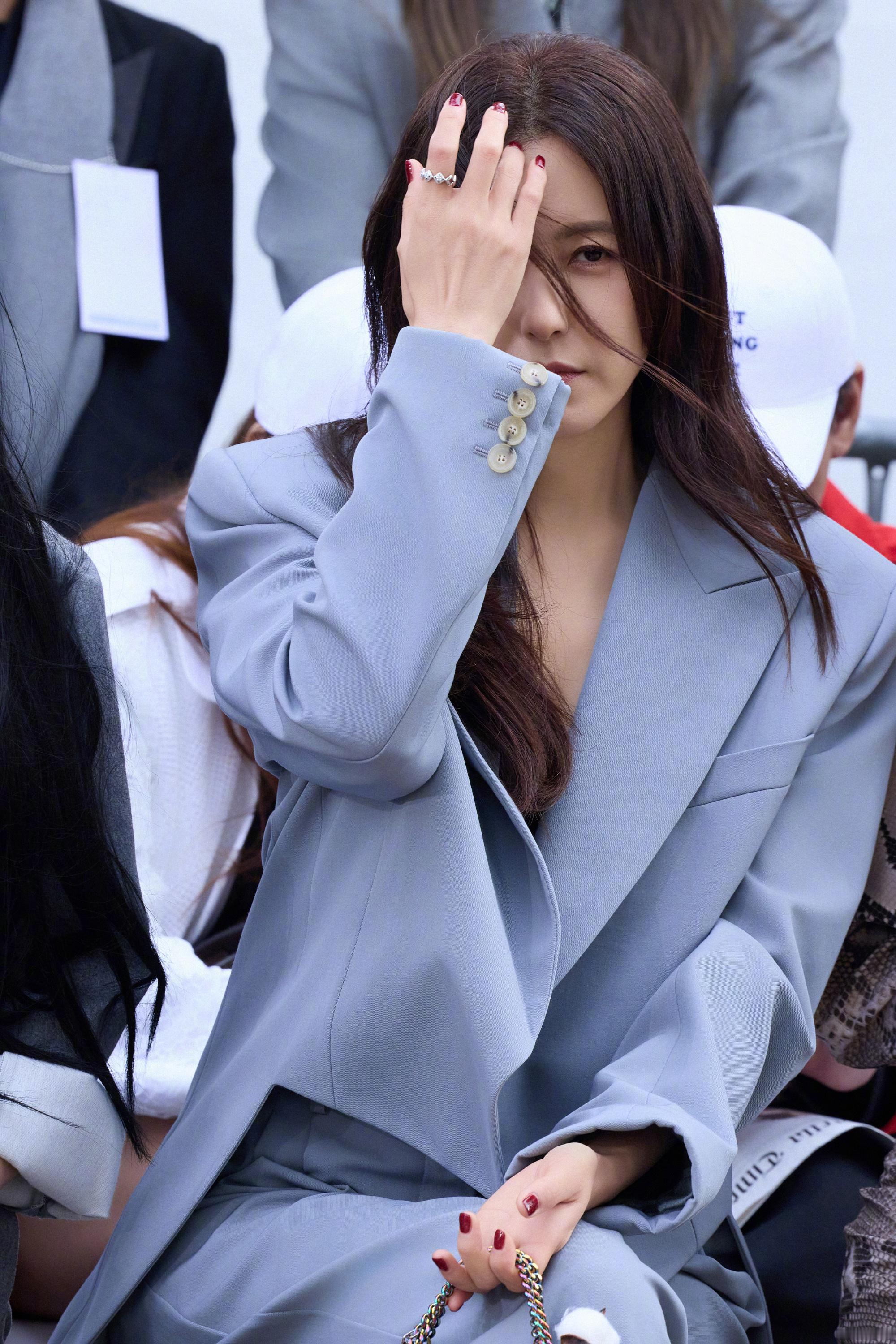 曾黎,一身蓝色西服套装,尽显摩登时髦的自信气场()