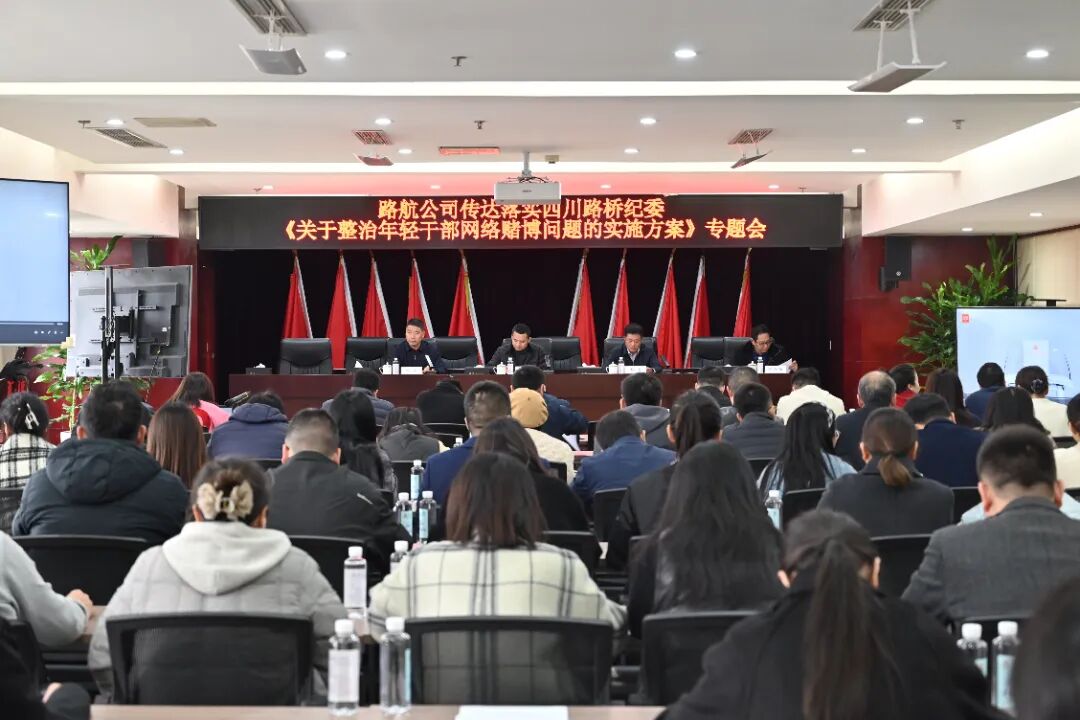 公开报道显示,21日,四川路航公司组织召开专题会议,集中传达学习四川路桥纪委《关于整治年轻干部网络赌博问题的实施方案》。会上,全体人员集中观看了警示教育片《严查因赌及腐》,并同步组织开展了参与网络赌博自查自纠工作,签订了自觉抵制网络赌博承诺书。