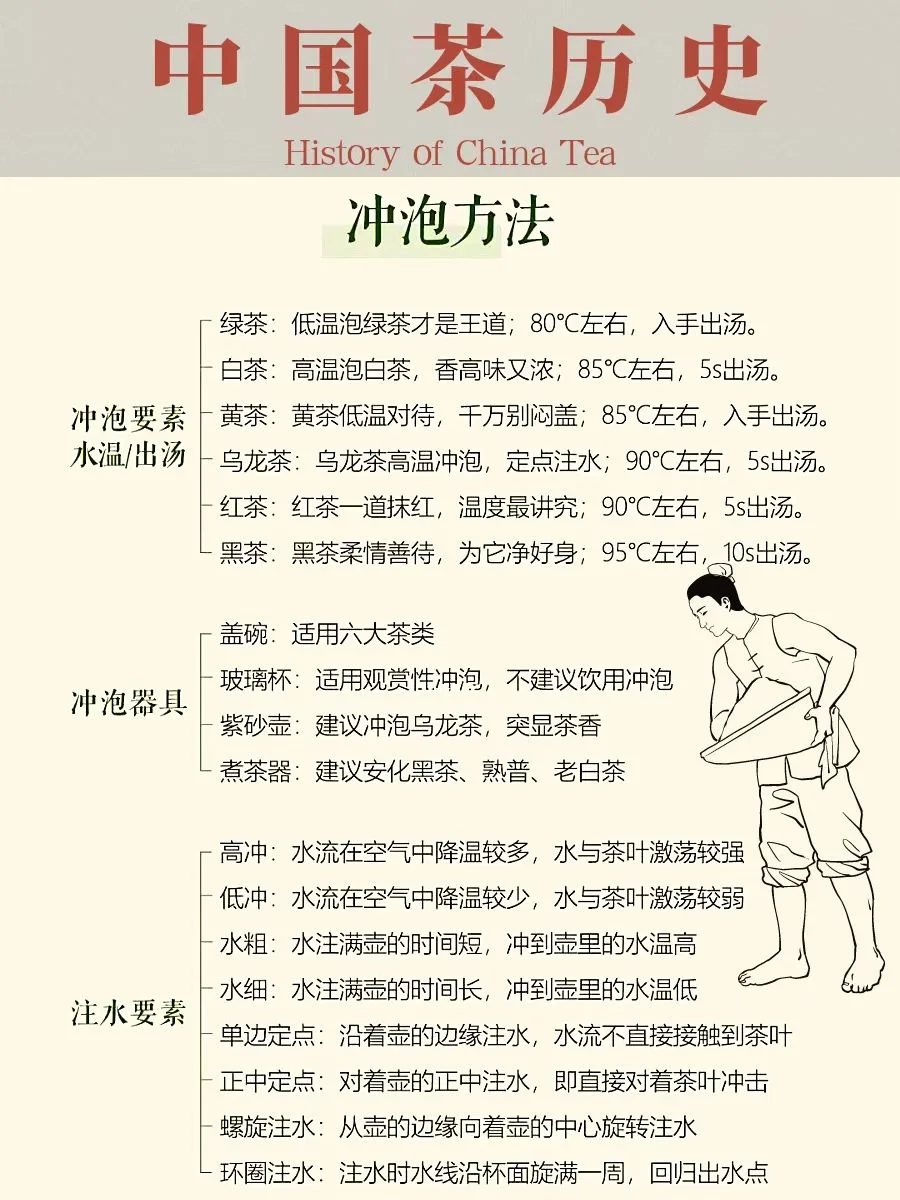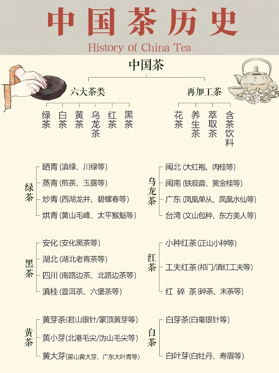 朱元璋废团为散,紧压茶减少,散茶增加,泡茶饮茶步骤由繁杂变简单,瀹饮法盛行。六大茶类出现。